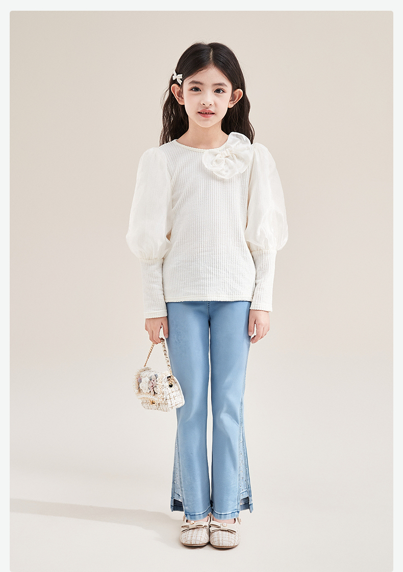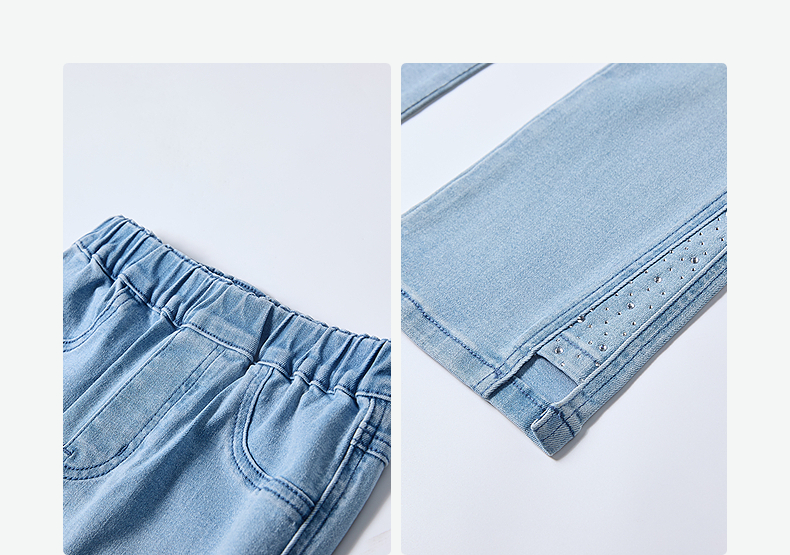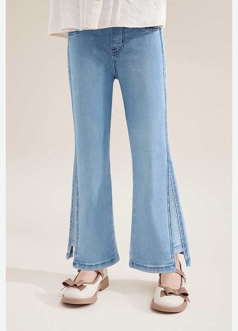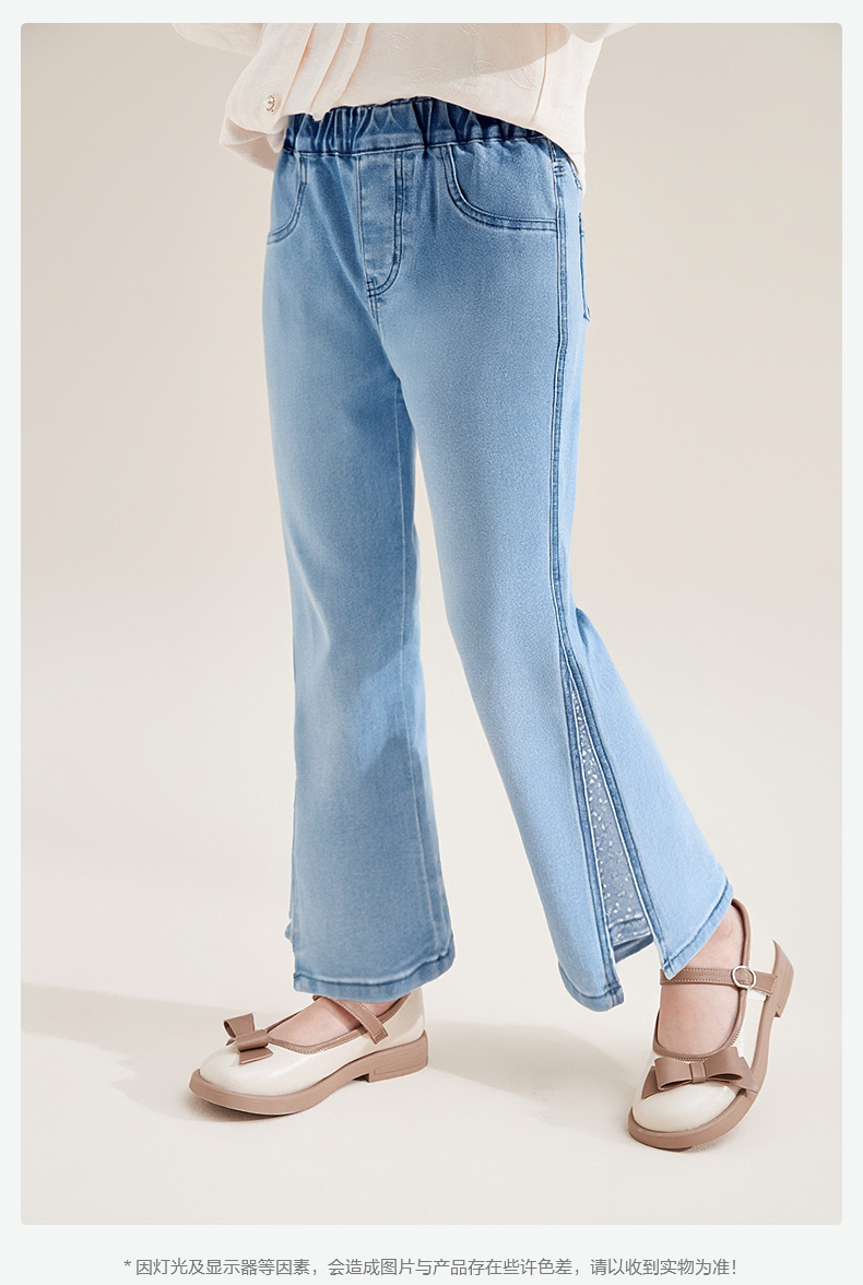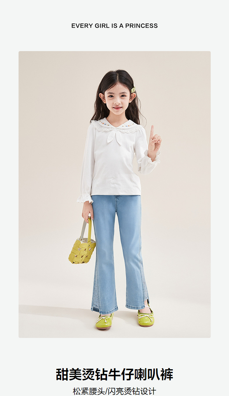 笛莎Deesha 童装女童裤子2025秋新款女童甜美烫钻牛仔喇叭裤