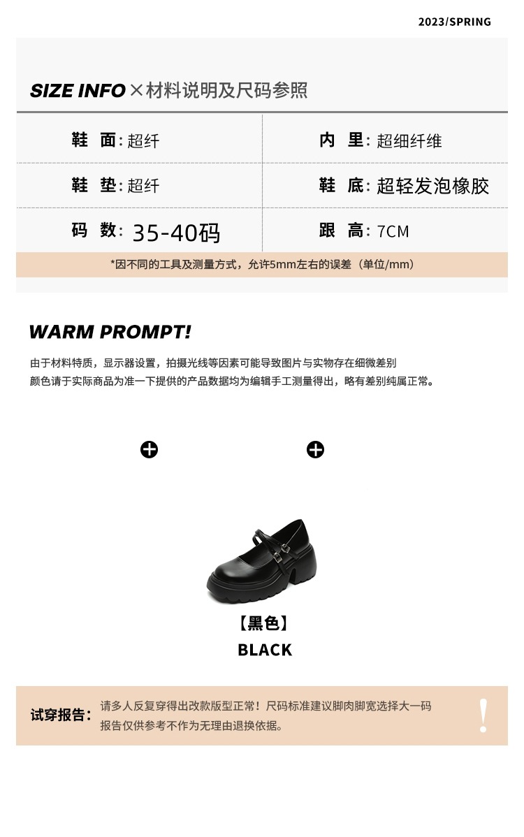 玛丽珍鞋女粗跟2025春夏新款松糕厚底英伦风小皮鞋一字带日系单鞋 商品图2