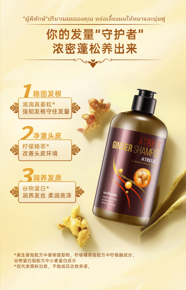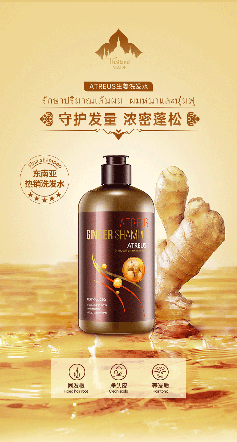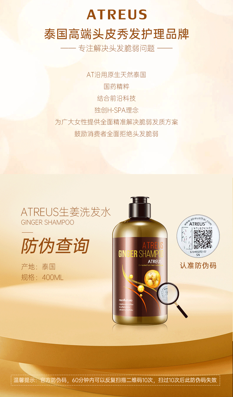【一般贸易进口】泰国正品ATREUS生姜洗发水400ml 护发清爽去头屑