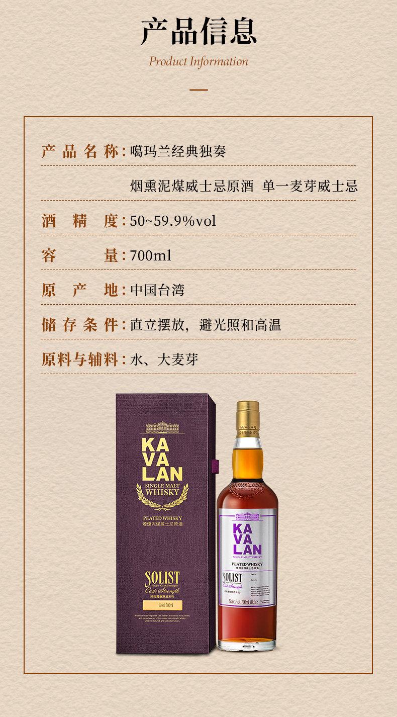 噶玛兰(Kavalan)烟熏泥煤单桶单一麦芽中国台湾威士忌