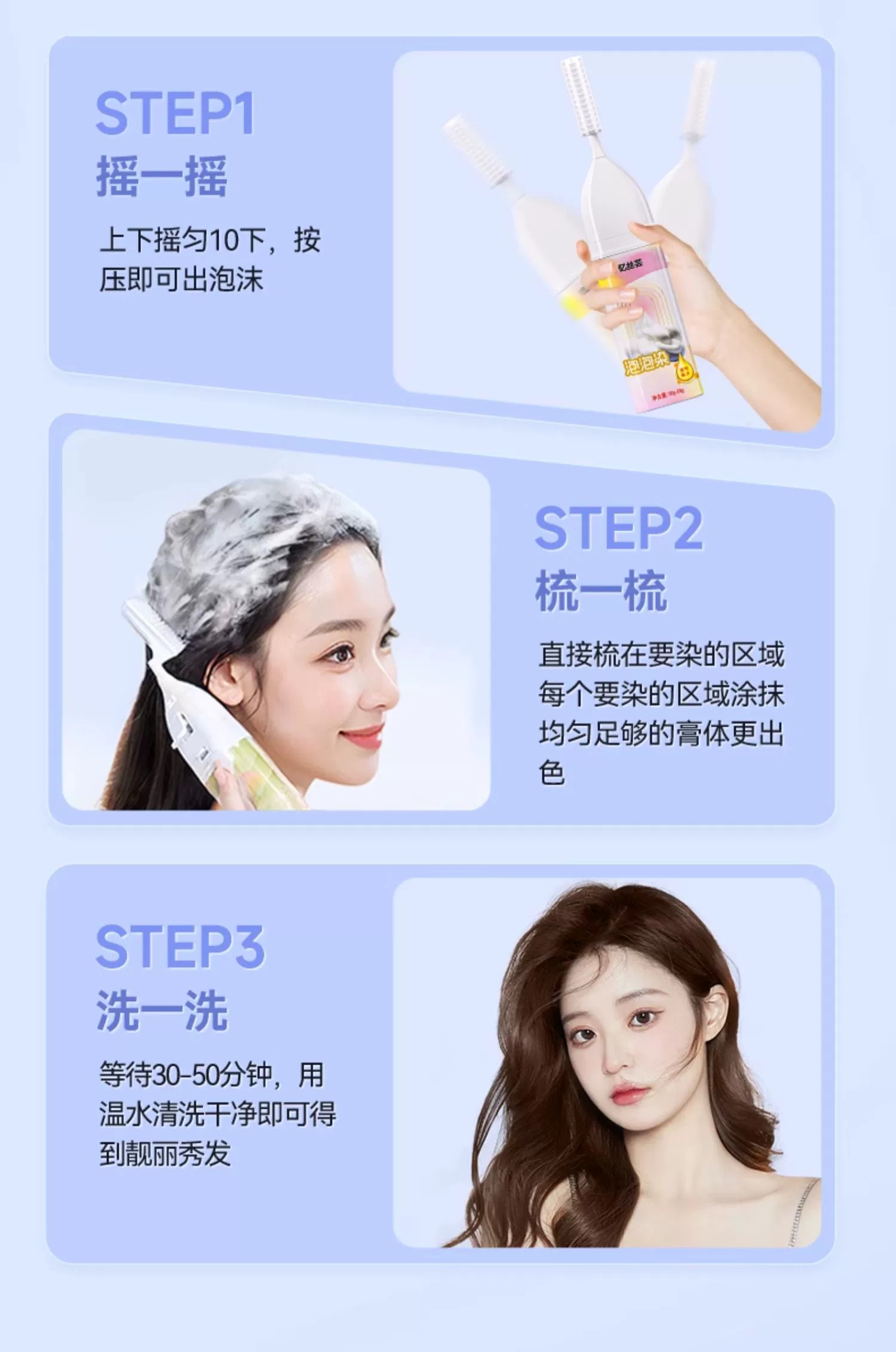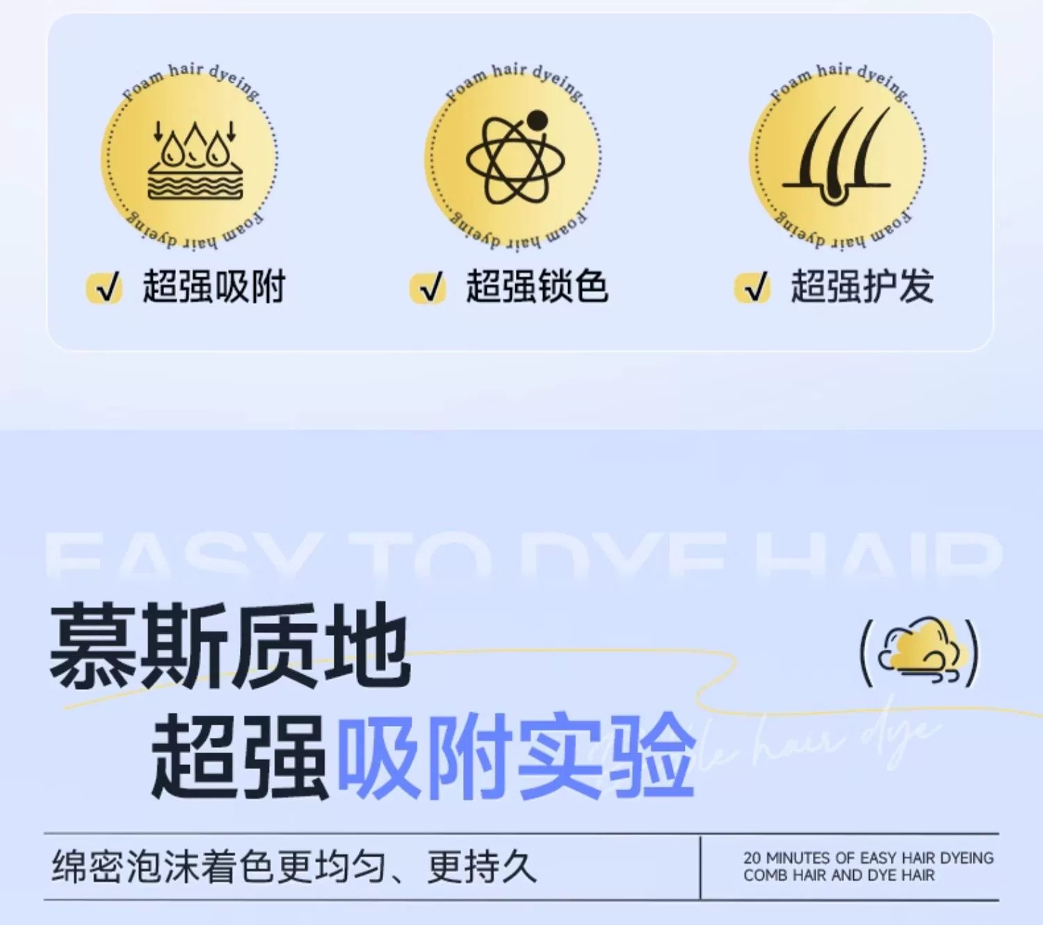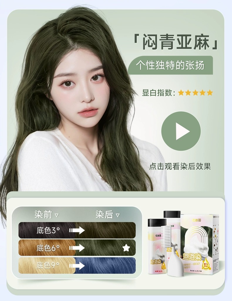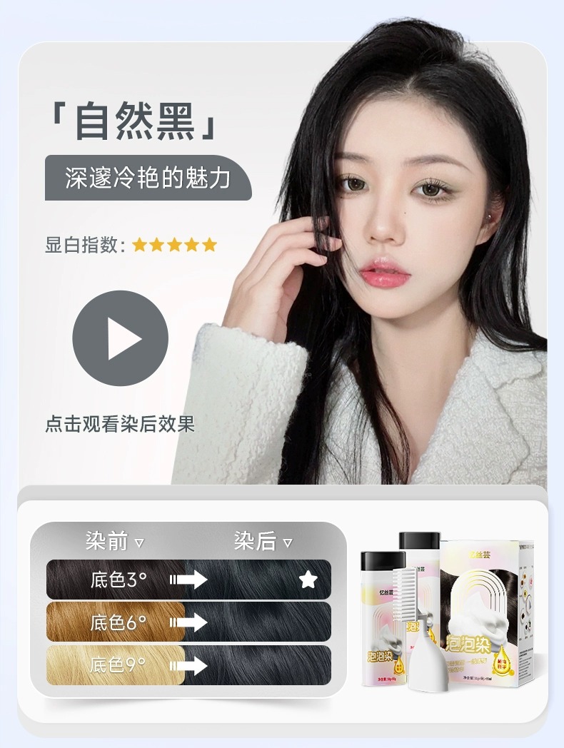 【忆丝芸焕彩泡泡染发摩丝】 纯黑茶色植物染发膏男女天然泡沫无刺激正品
