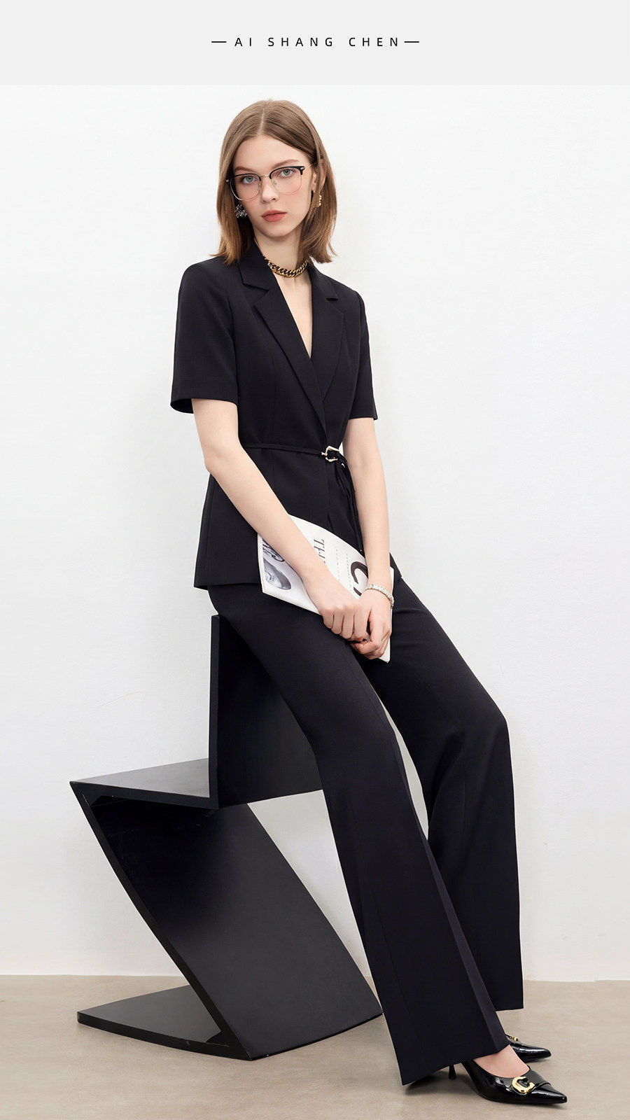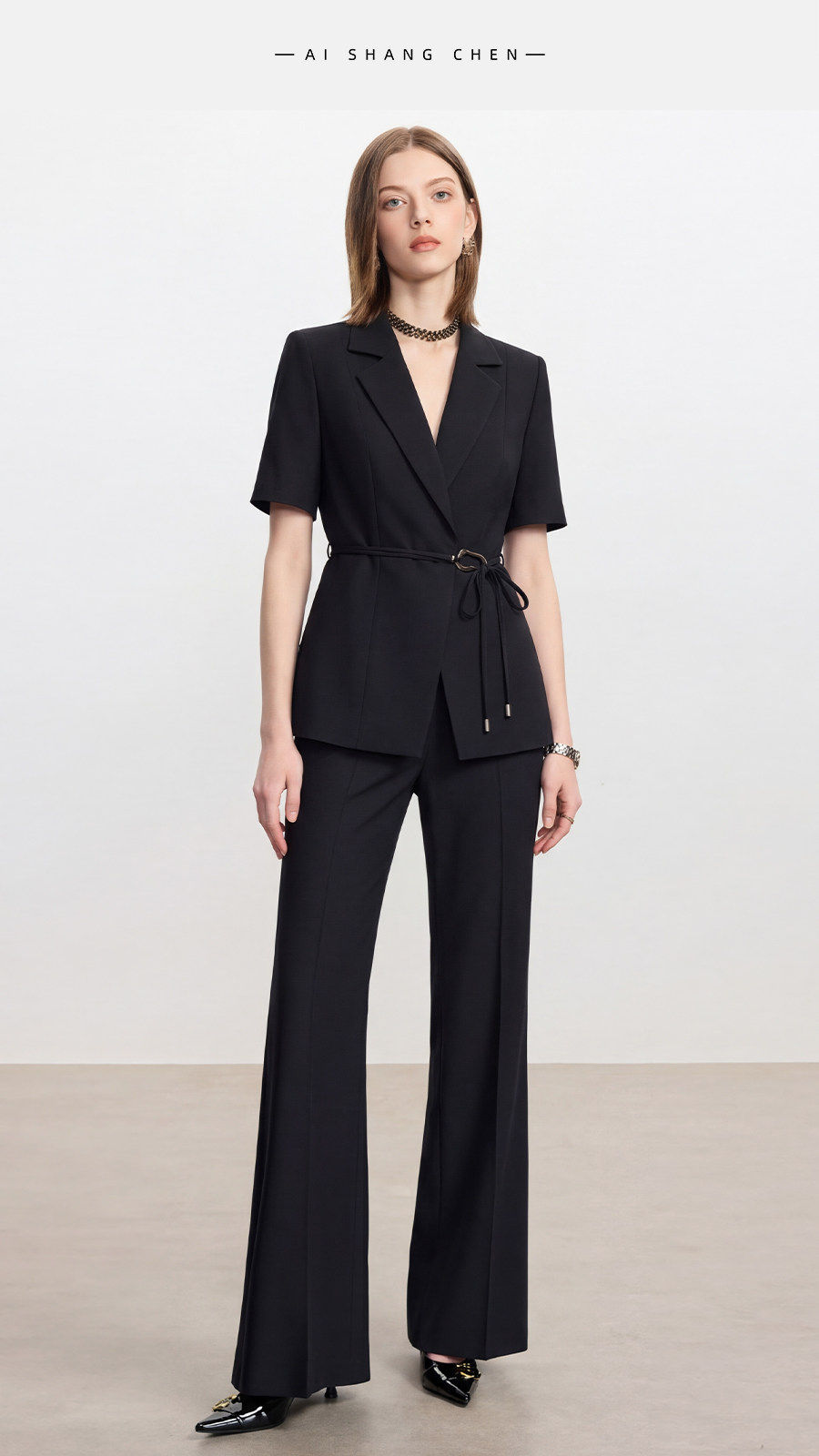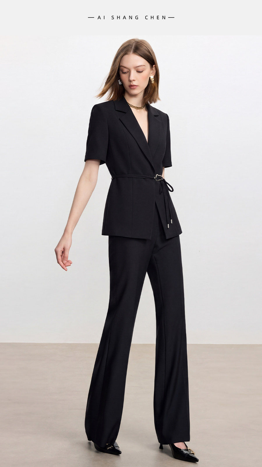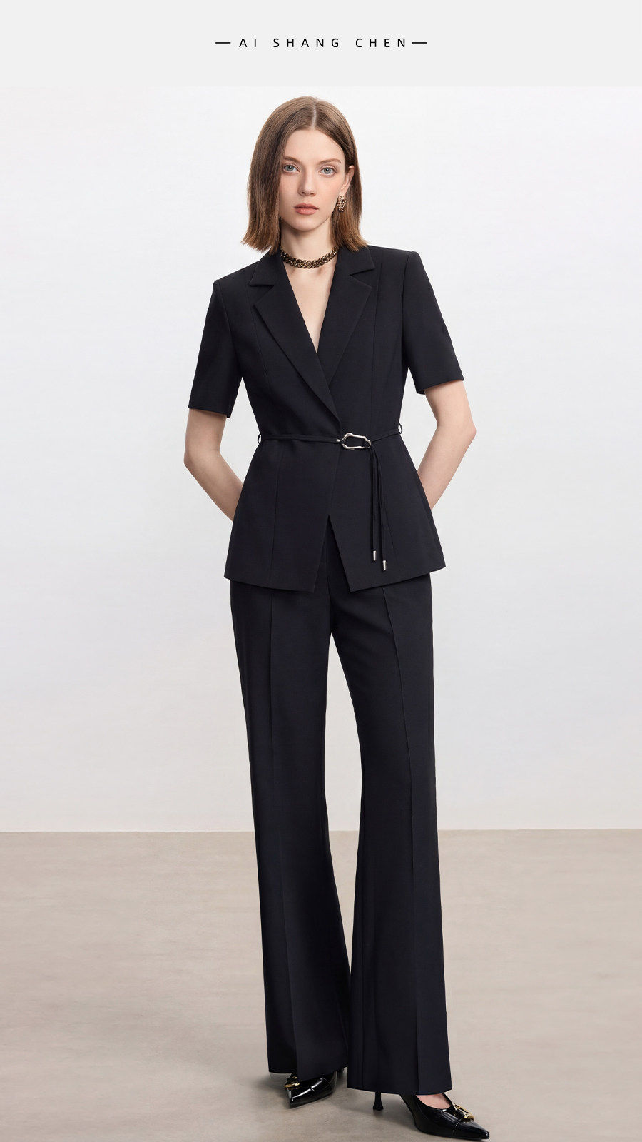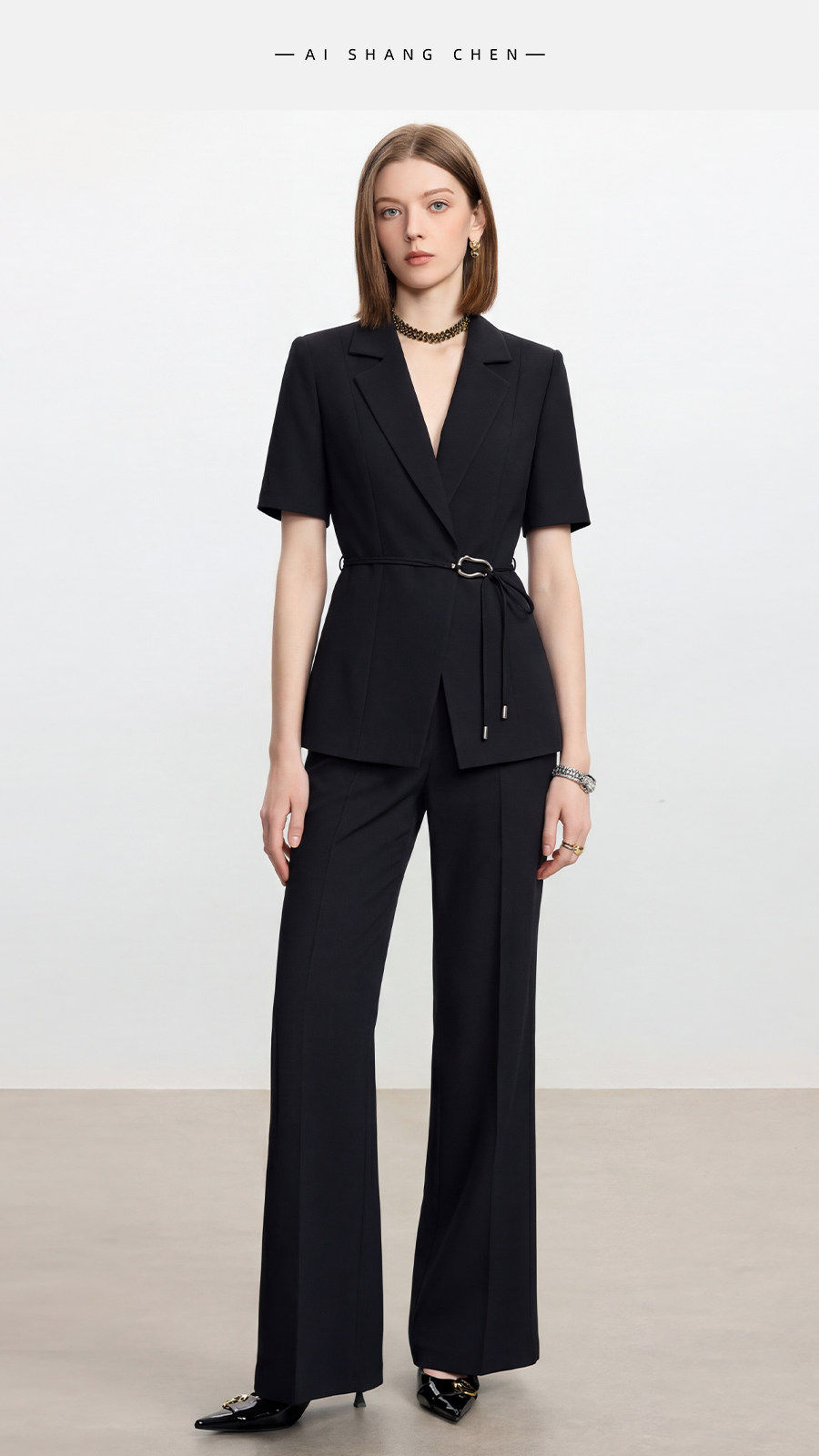 IWY/高级感黑色短袖西装套装女夏季新款职业装面试工作服26CP969