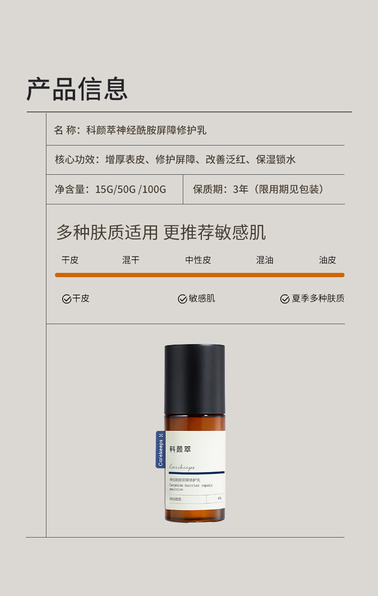 【中样】科颜萃神经酰胺屏障修复乳15ml/支