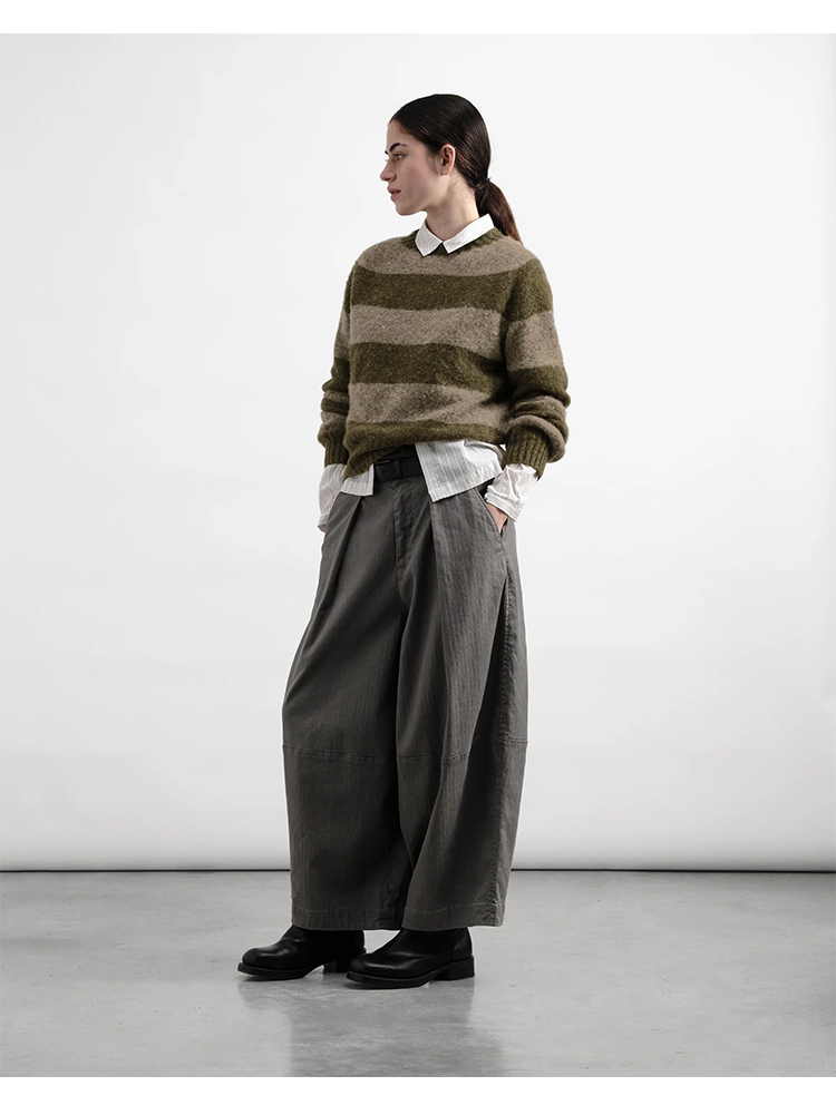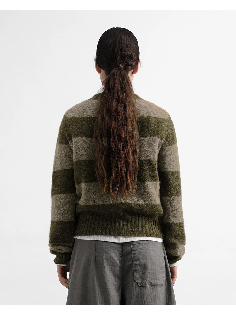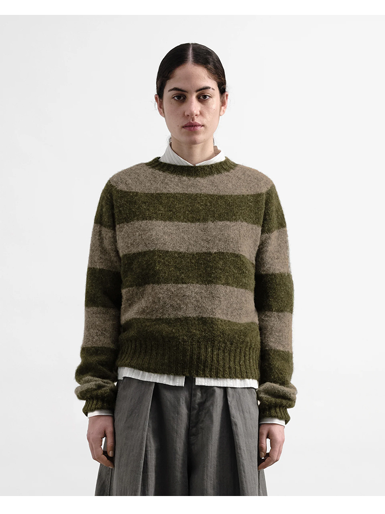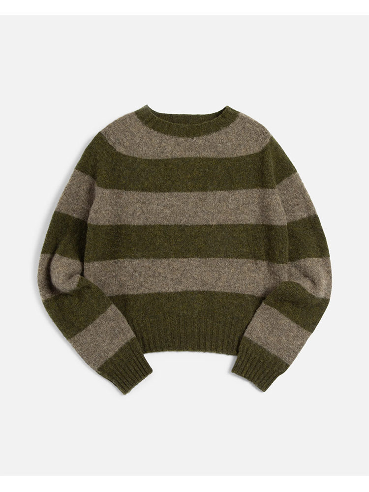 YMC JETS STRIPE KNIT 英国羊羔毛女装圆领条纹毛衣
