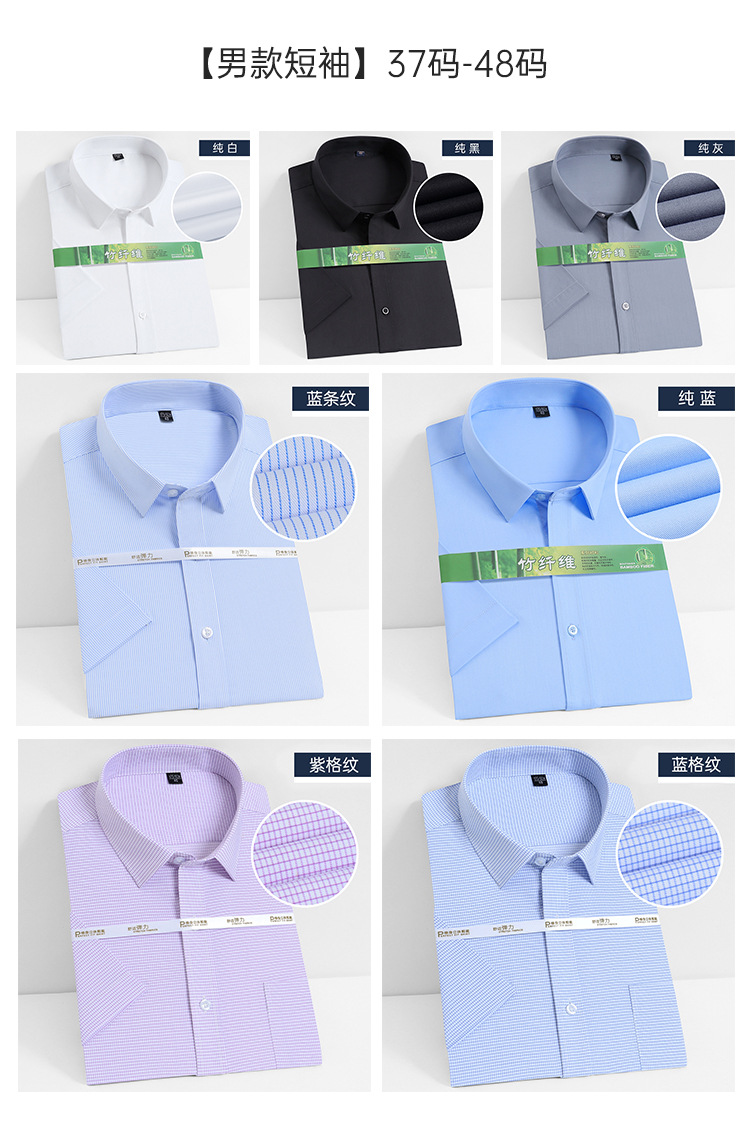 【实付满399送保温杯】【竹纤维抗皱衬衫】男女商务长袖衬衫 大码免烫短袖休闲衬衣