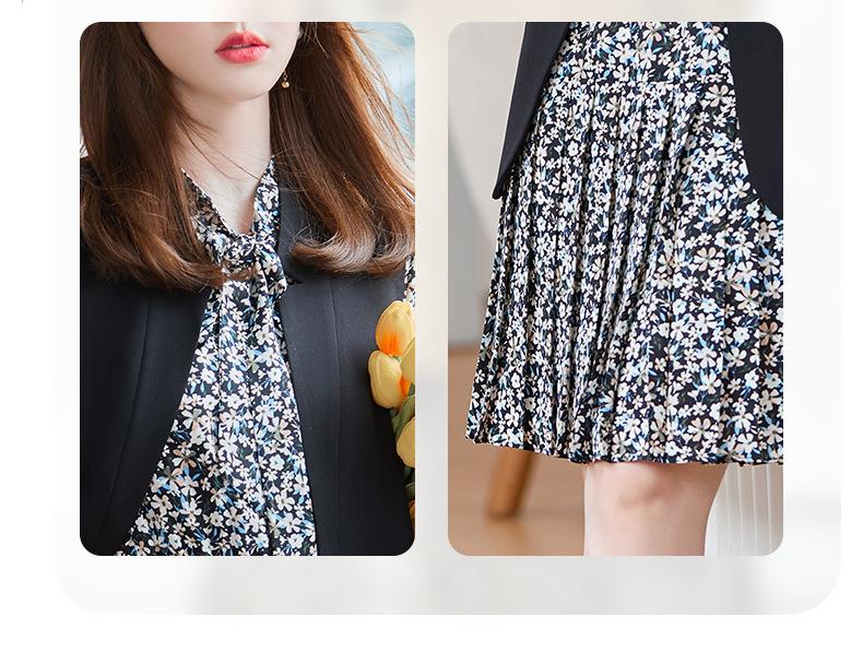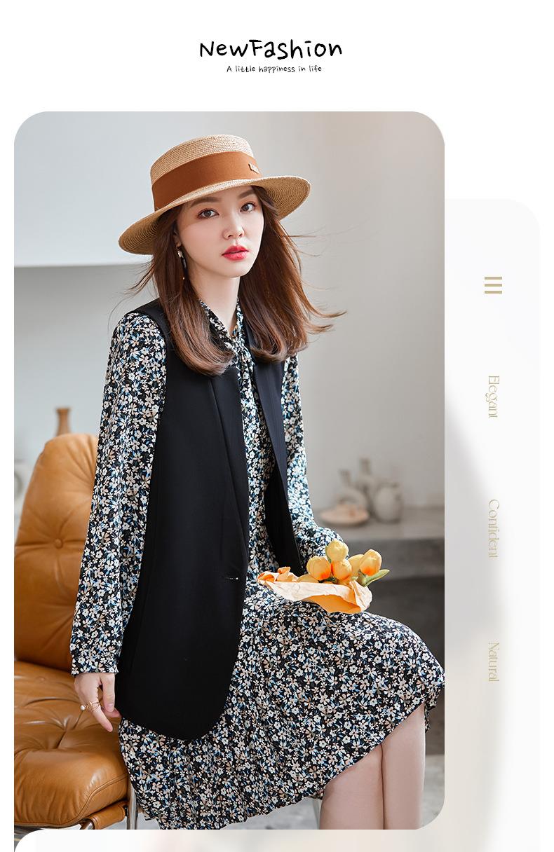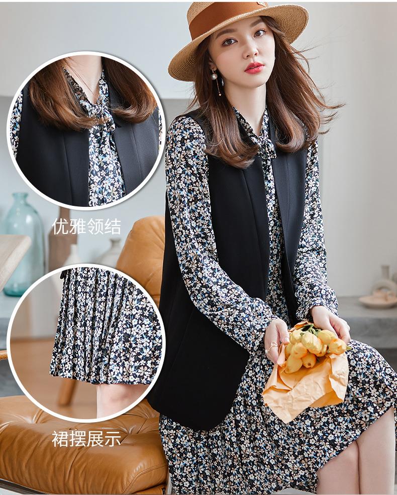 娜璐多 秋季新款女装碎花连衣裙马甲套装洋气复古风裙子两件套休闲