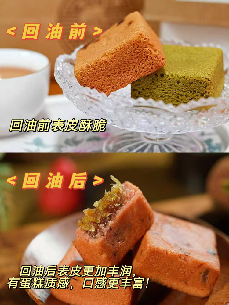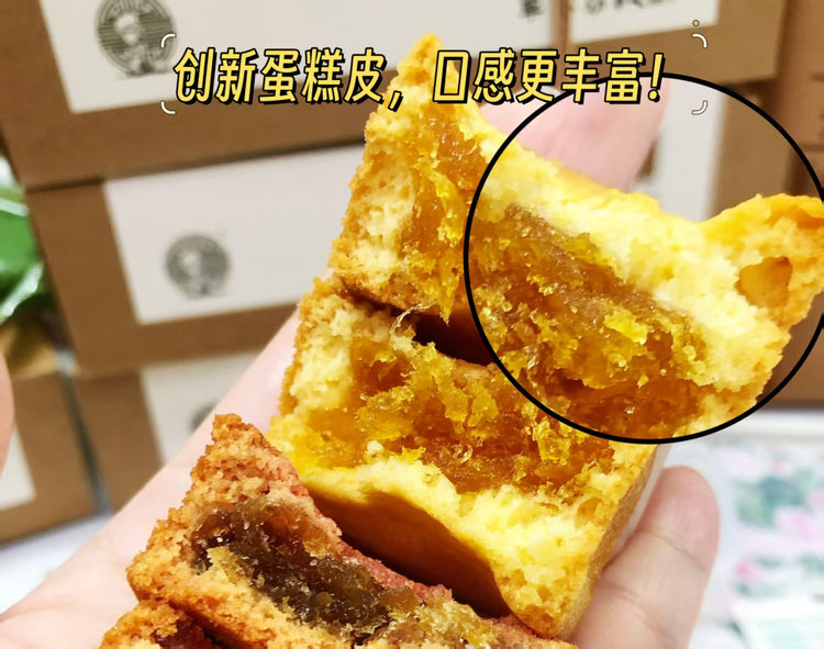 PS:分享一个知识点,这款酥点采用了创新蛋糕皮,刚烤制出炉表皮酥脆,放置一段时间后会慢慢回油,回油会让酥点口感更加丰富,增加风味;
