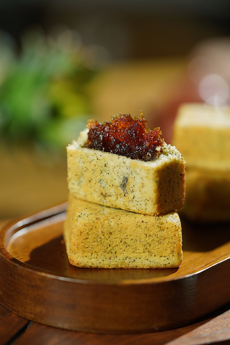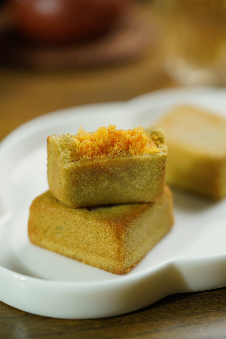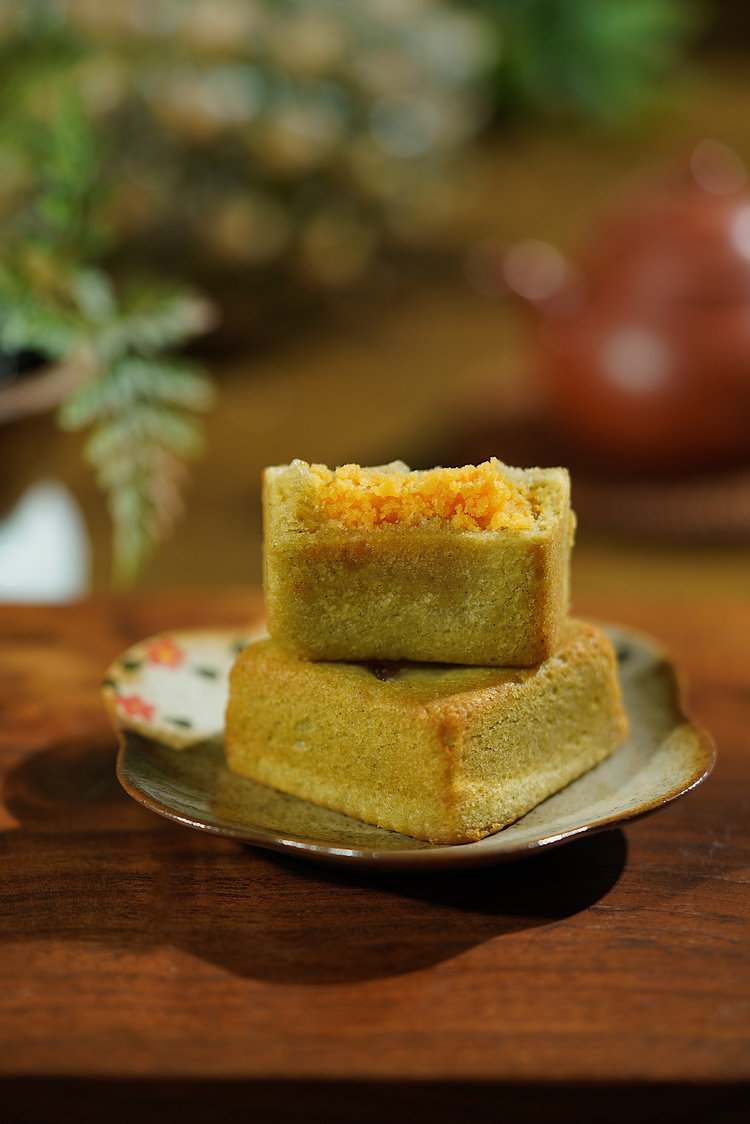 酥皮混着淡淡兰花香,内馅是香甜的凤梨,加上绵密的咸蛋黄