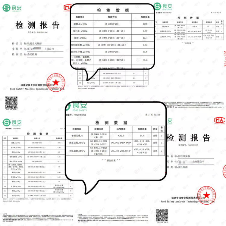 酥点都经过专业检测,有营养成分跟安全检测双报告,
