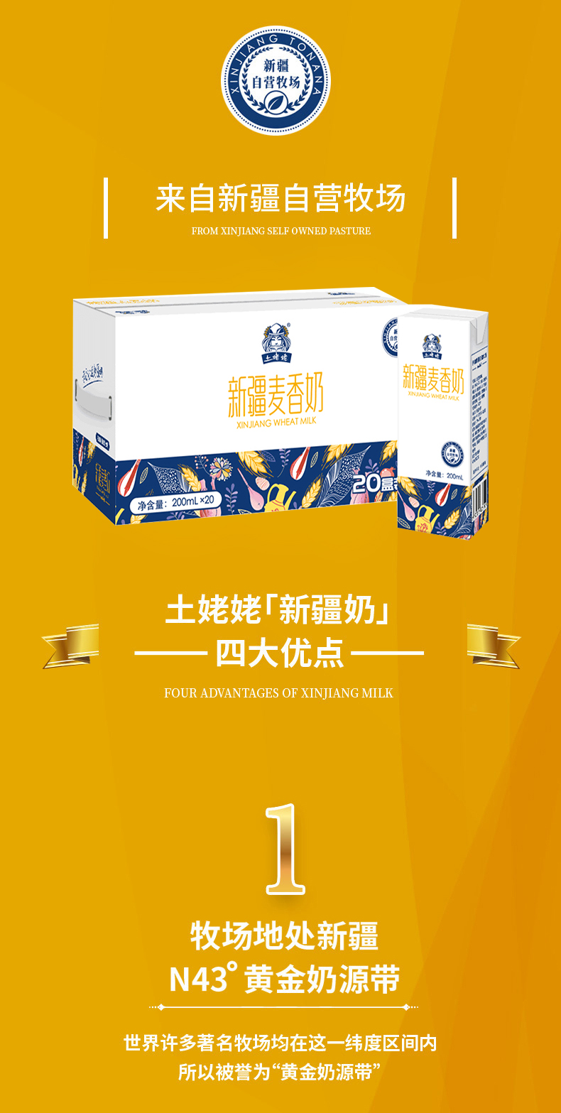 黄金奶源·新疆土姥姥麦香奶 天山水源滋养学生饮用奶认证