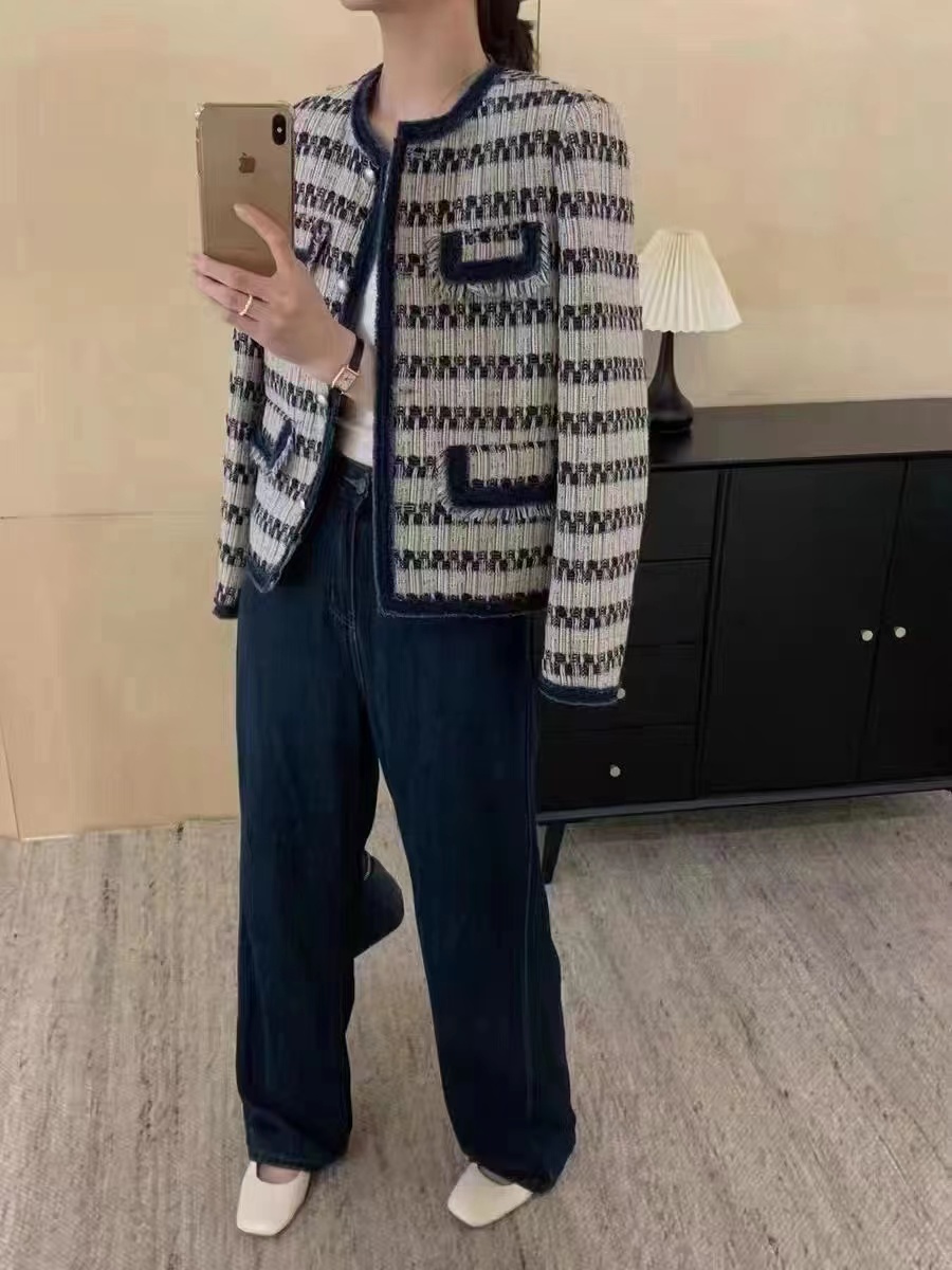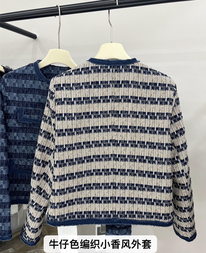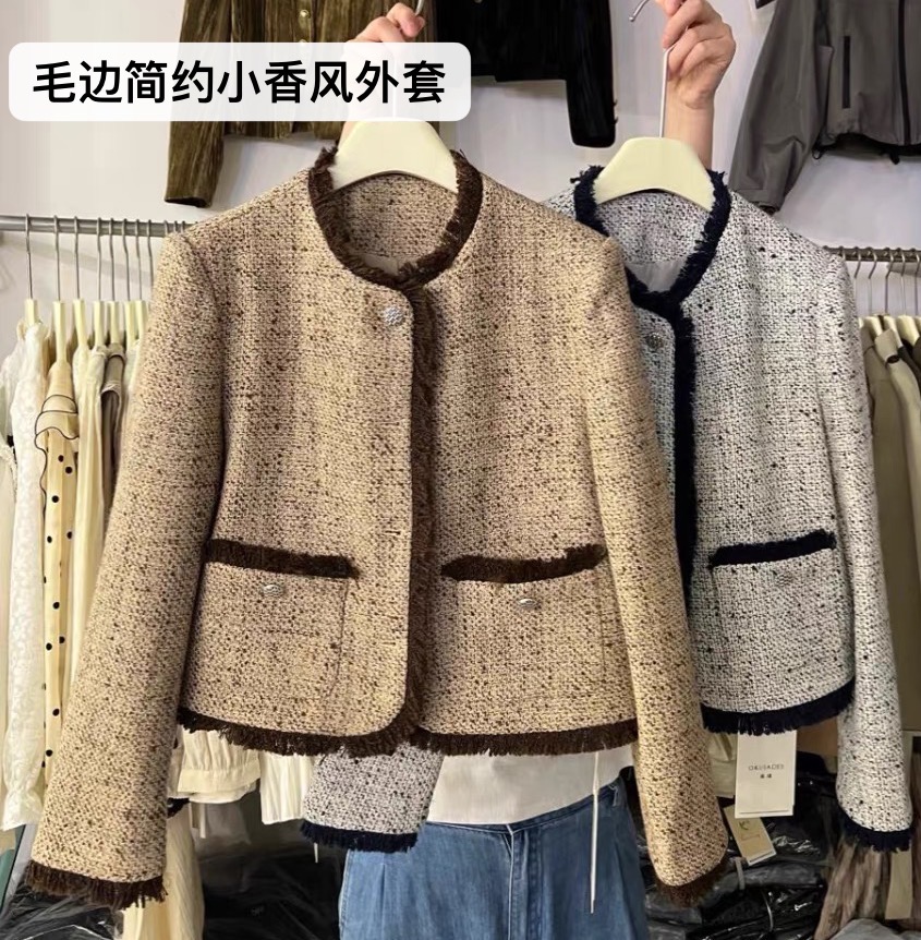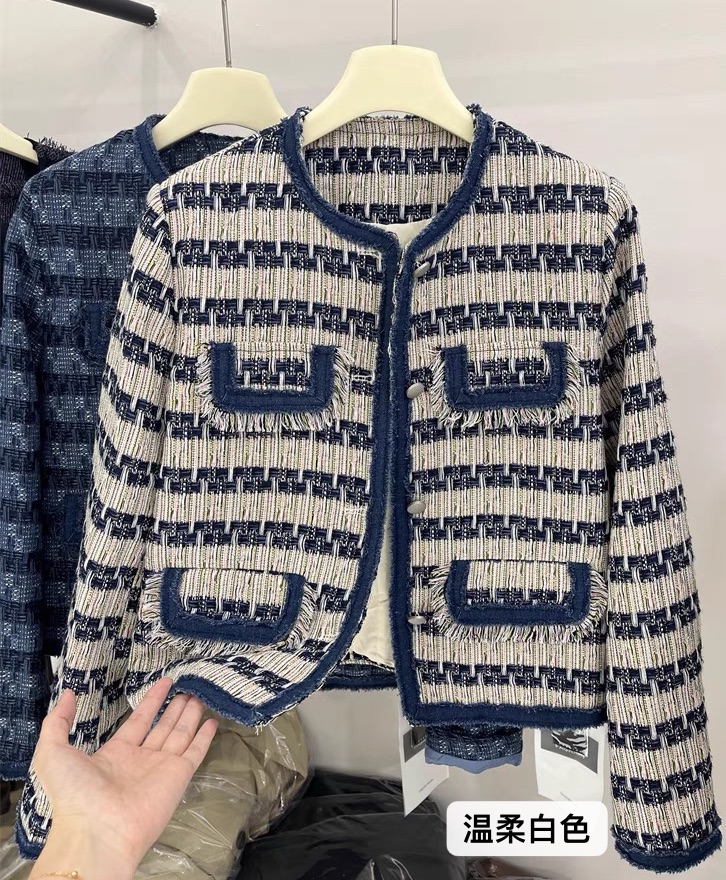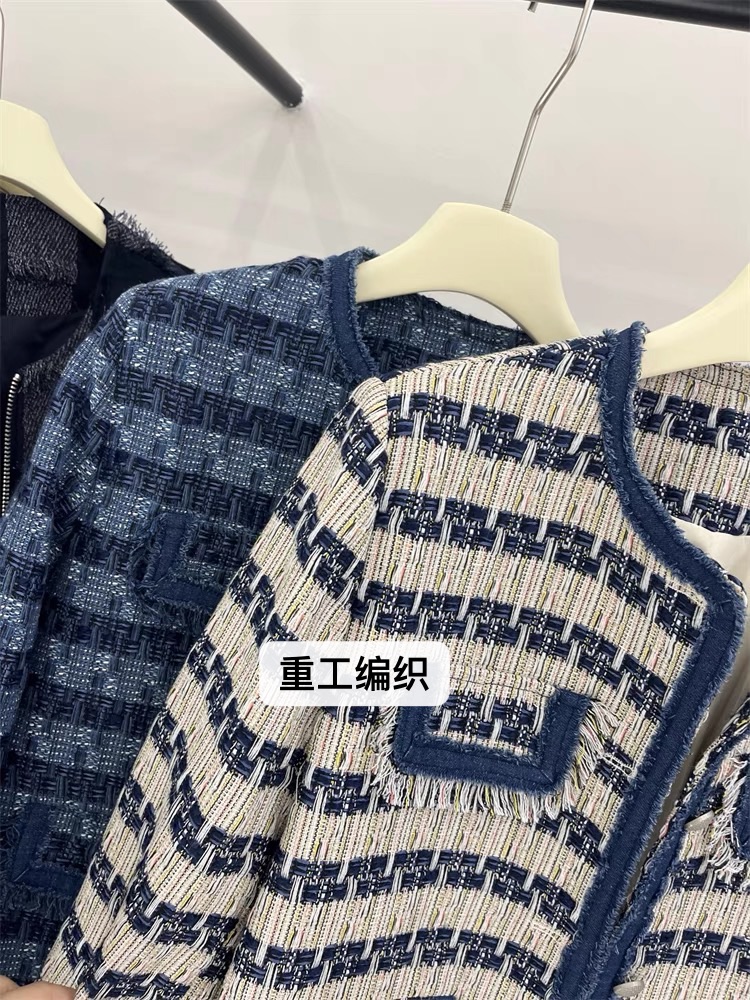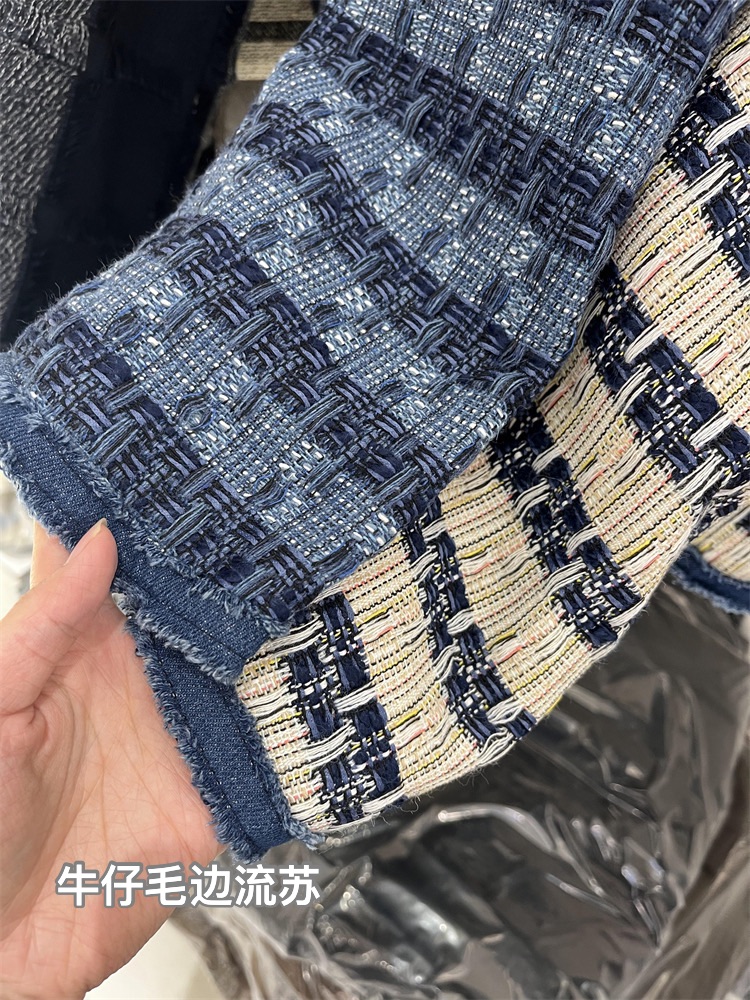 【GZ】无忧购秋冬名媛撞色牛仔拼接粗花呢小香风流苏毛边外套3081-3066(截单后7天发货)25年清仓捡漏