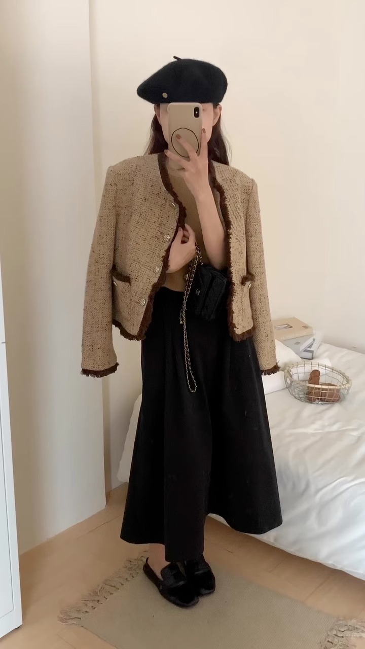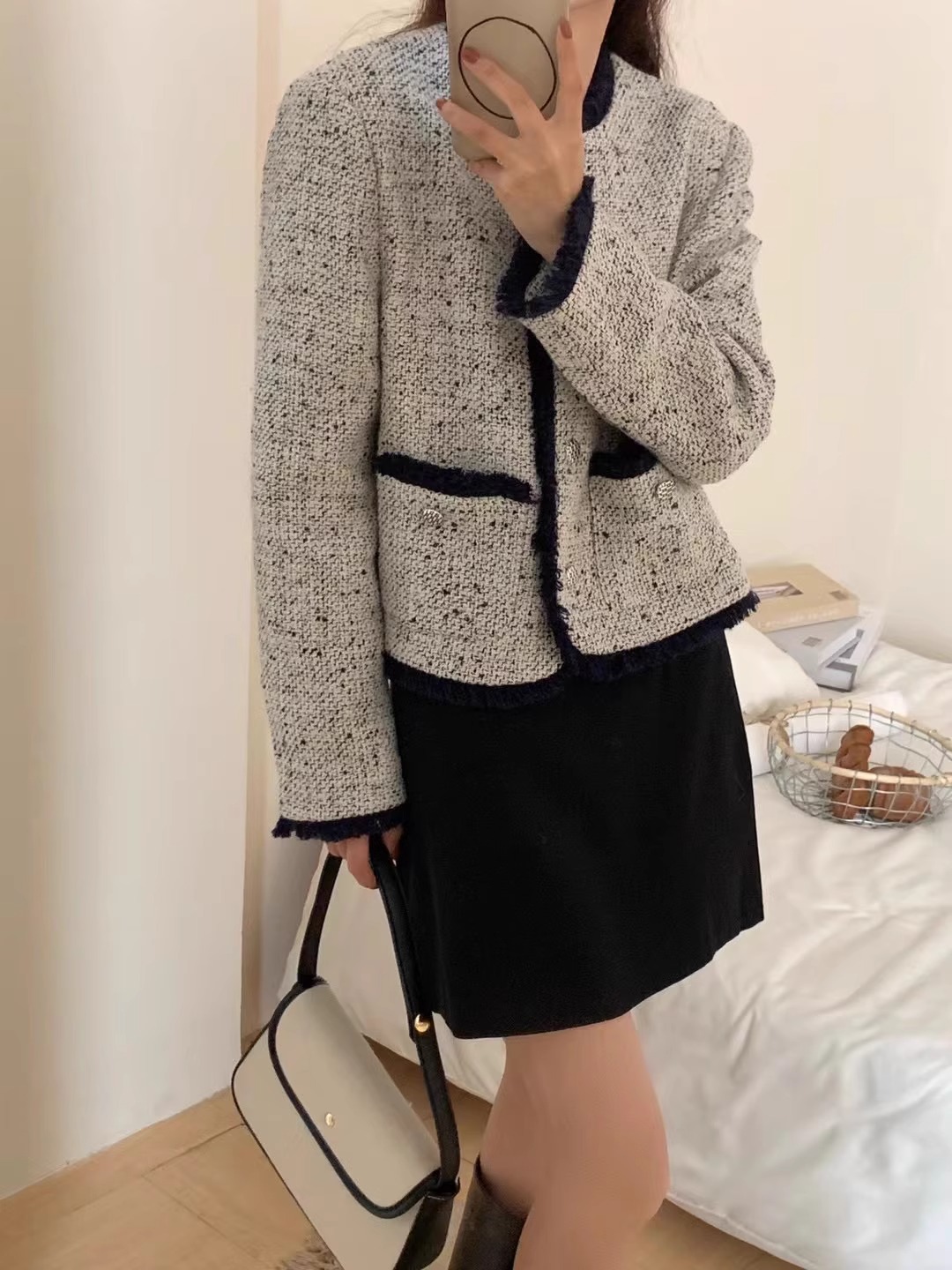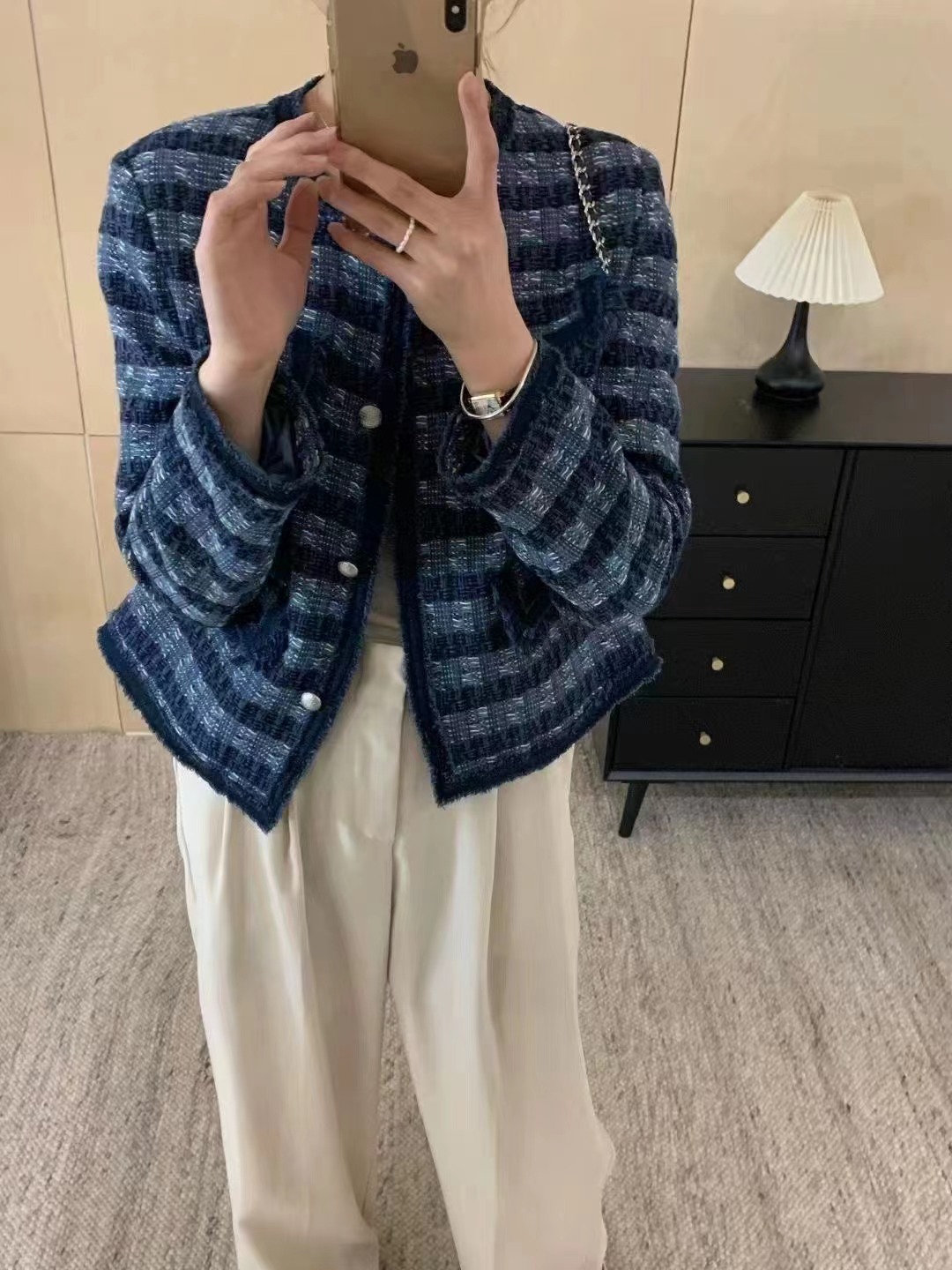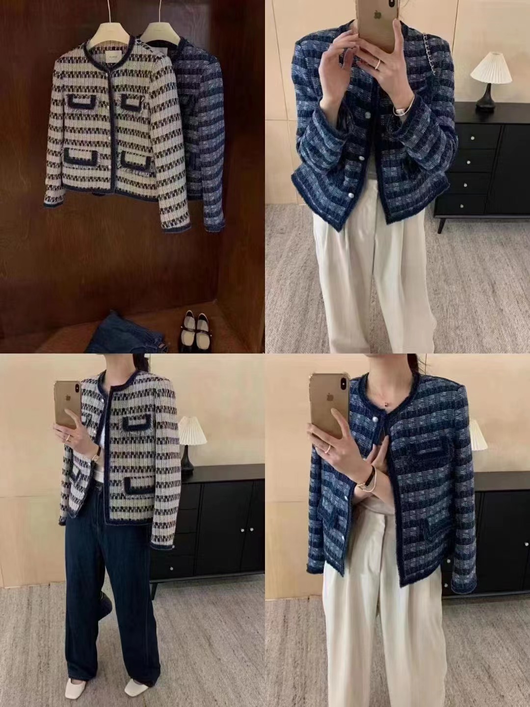 【GZ】无忧购秋冬名媛撞色牛仔拼接粗花呢小香风流苏毛边外套3081-3066(截单后7天发货)25年清仓捡漏