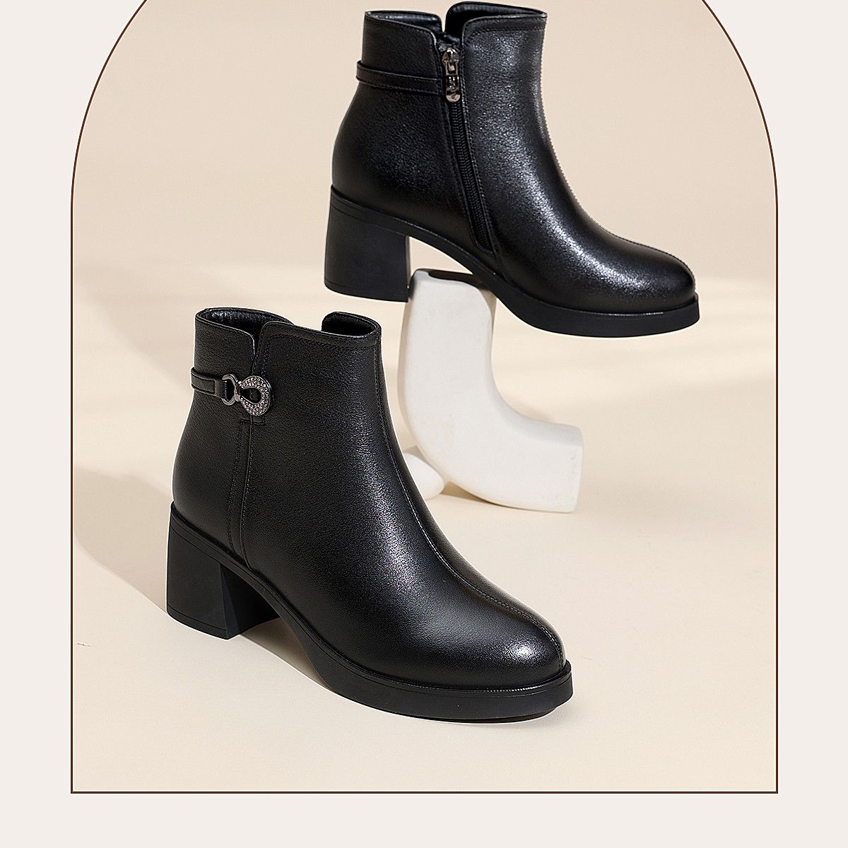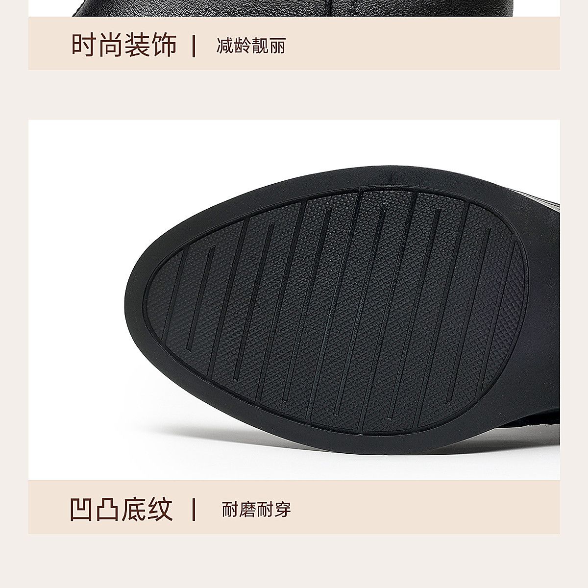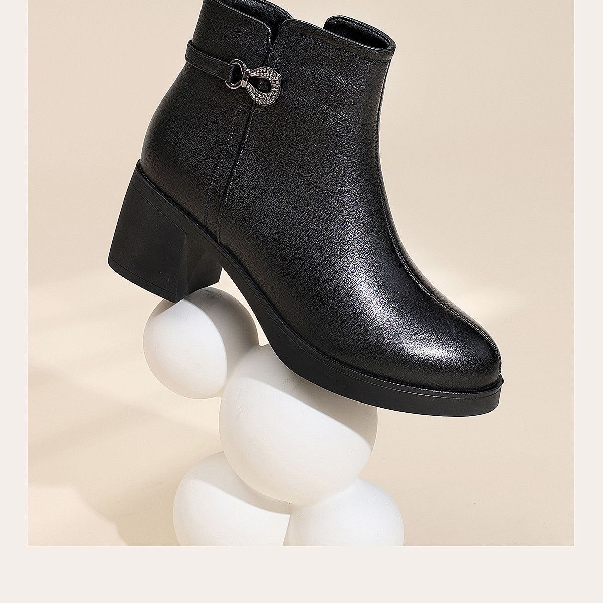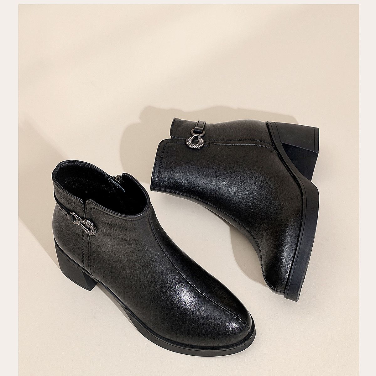 信诺真皮妈妈靴子中年女鞋气质粗跟短靴2025冬季新款加绒保暖棉鞋X5M153-256D