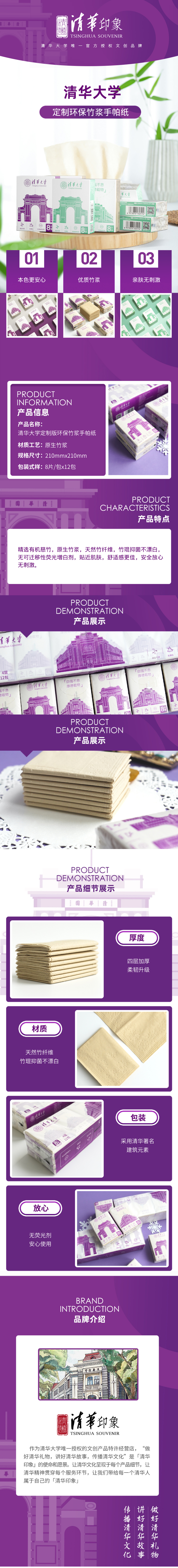 清华大学限定版环保竹浆手帕纸