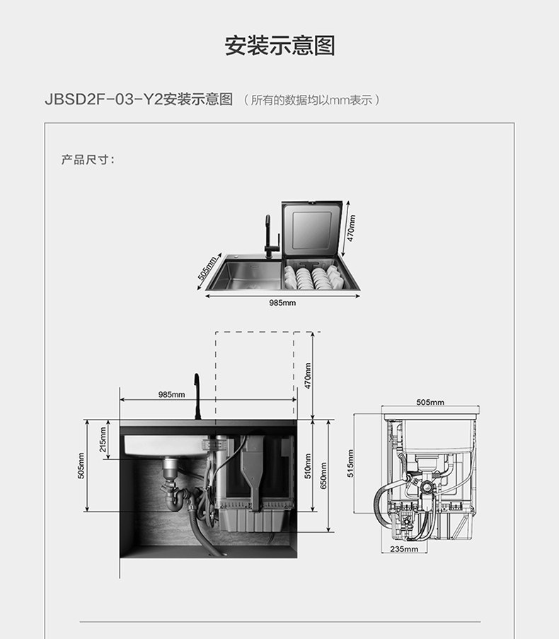 方太水槽洗碗机 JBSD2F-03-Y2