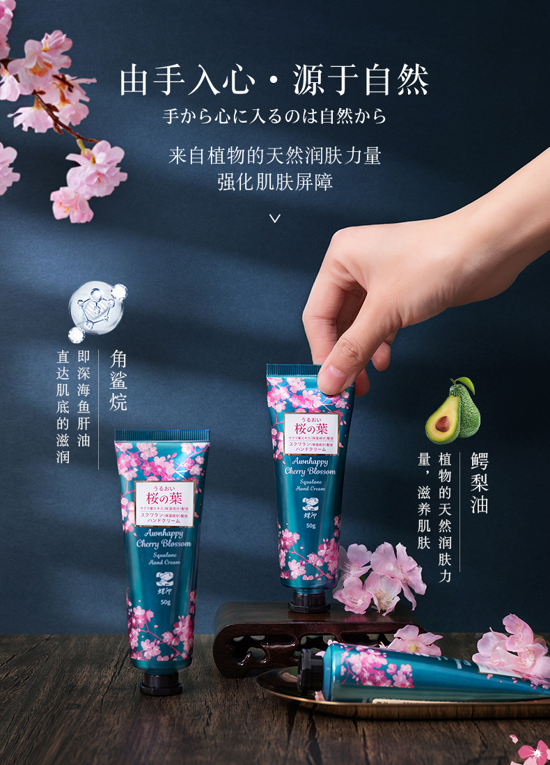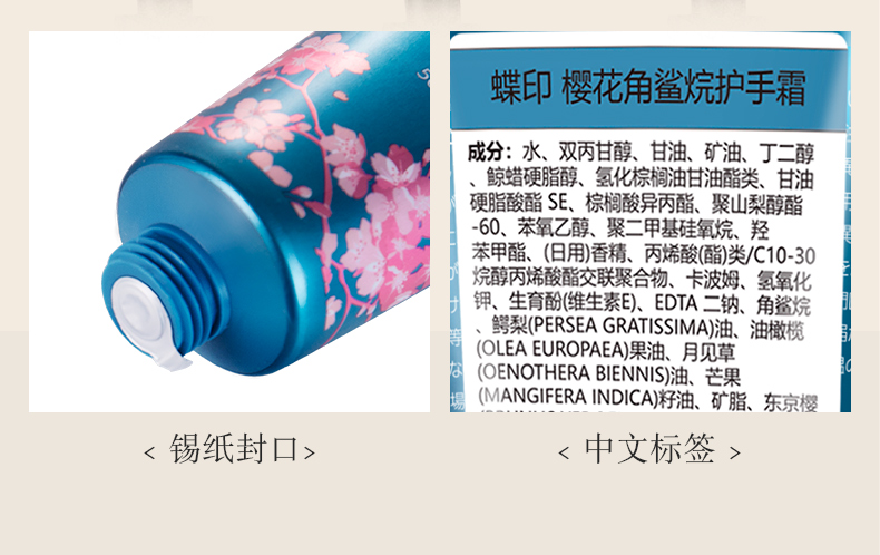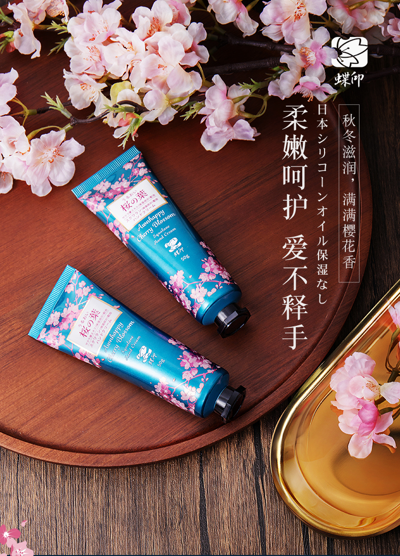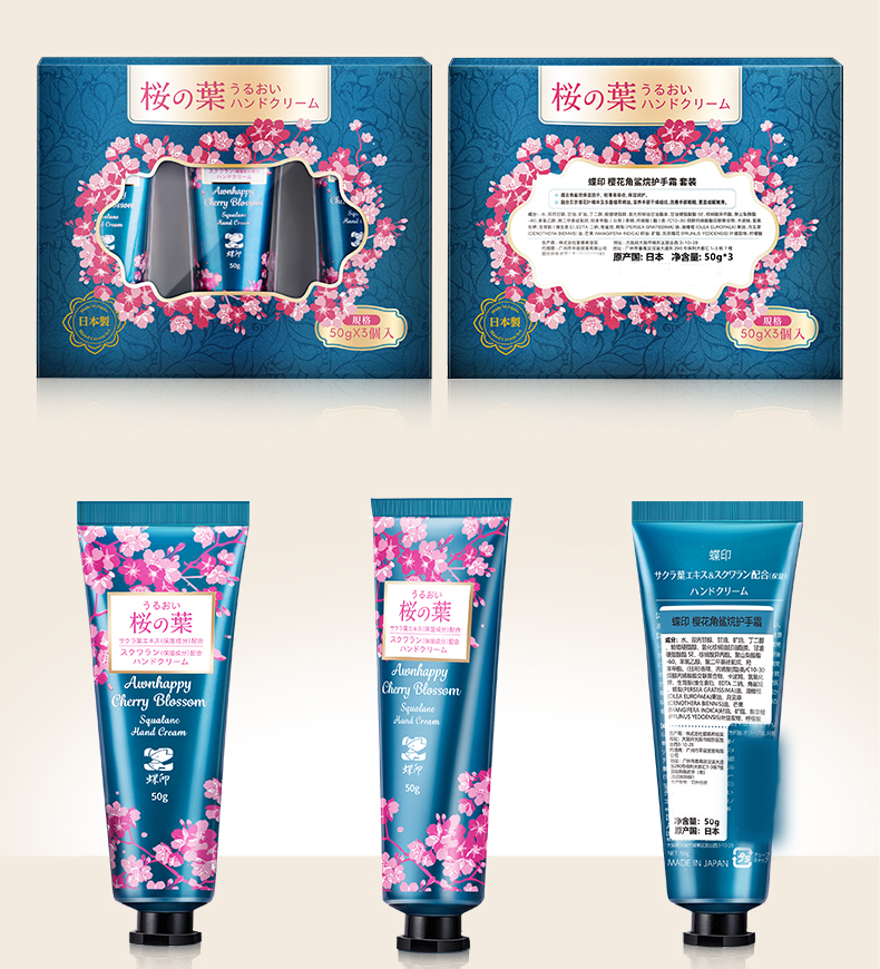 【中欧班列精选4支】日本樱花护手霜 原装进口蝶印角鲨烷樱花香护手霜 50g/支