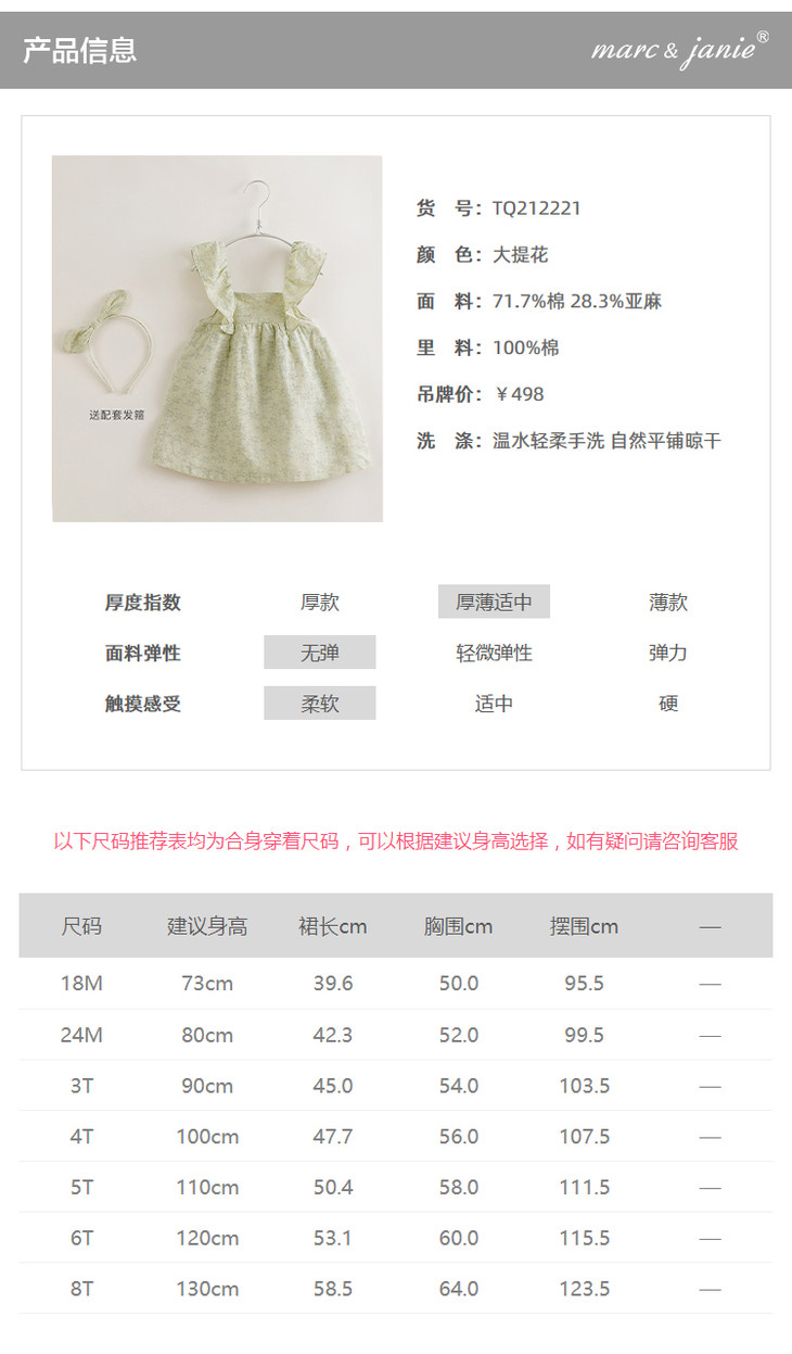 【打折】【马克珍妮 芦芙】夏装 女童提花棉麻吊带连衣裙212221