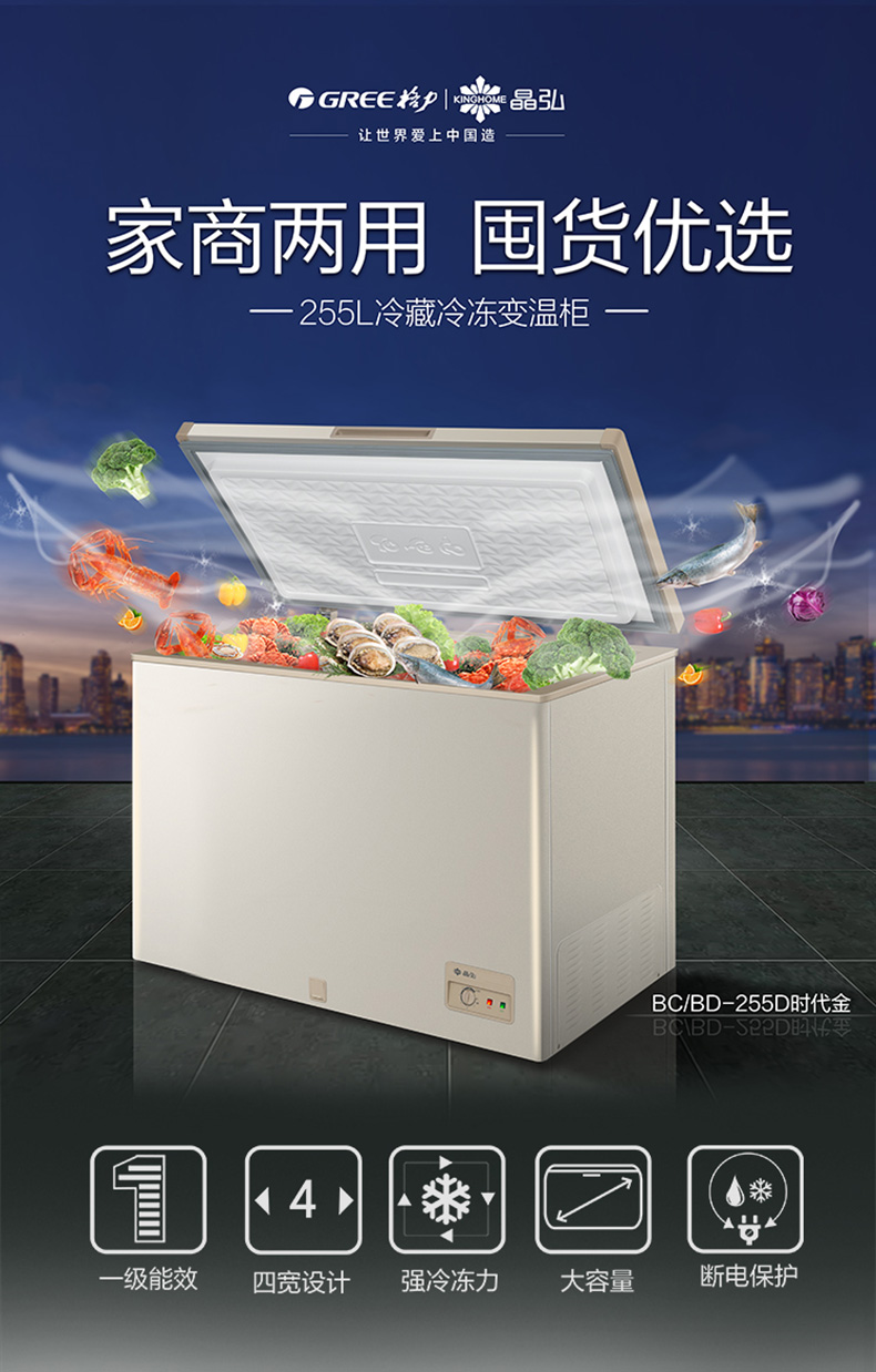 晶弘·冰柜 单温转换柜 255L BC/BD-255D/时代金