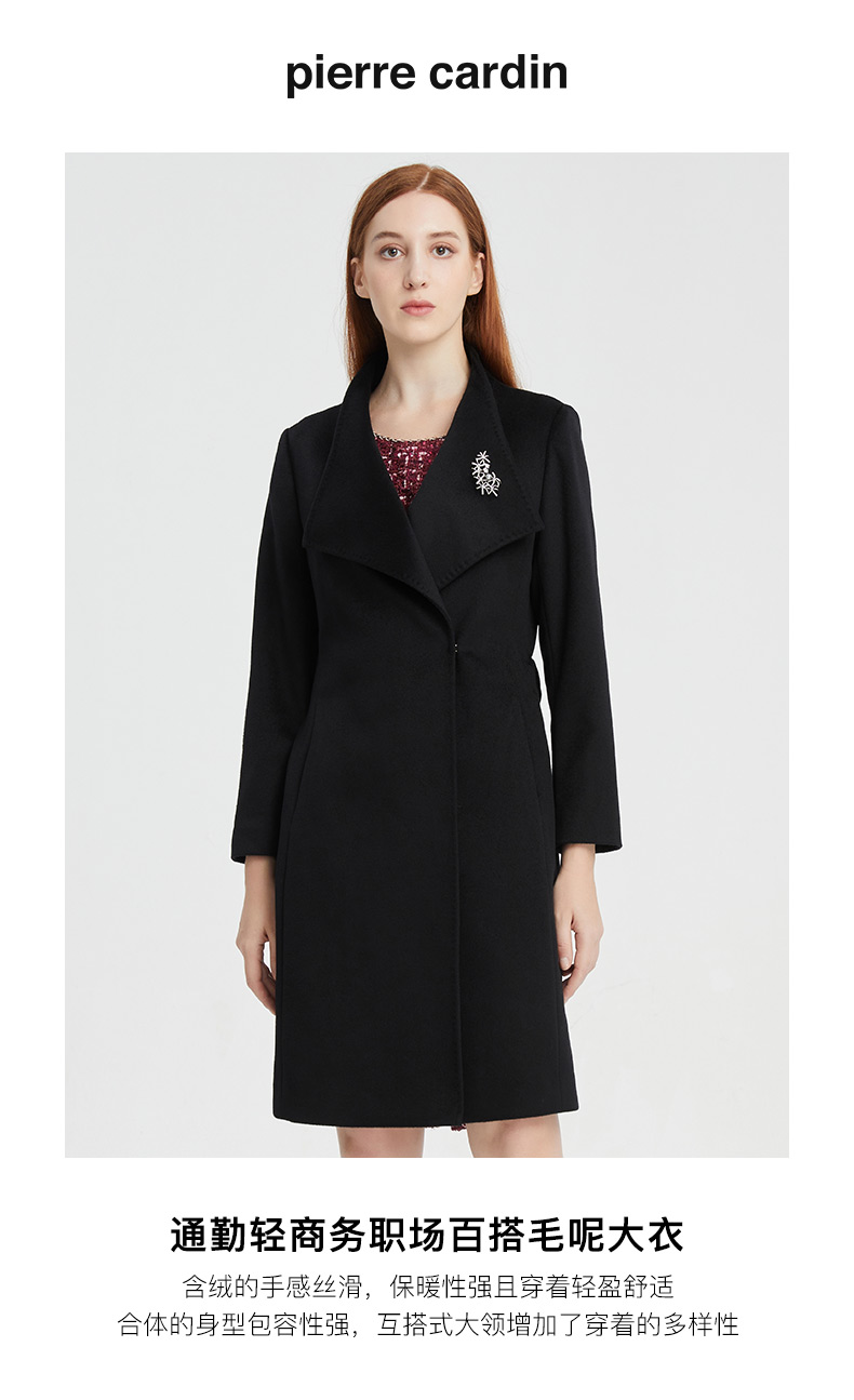 皮尔卡丹女装秋季新款轻商务通勤淑女羊毛大衣P1453C1972B0