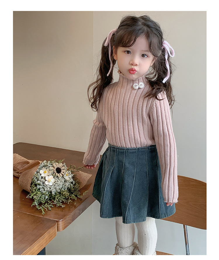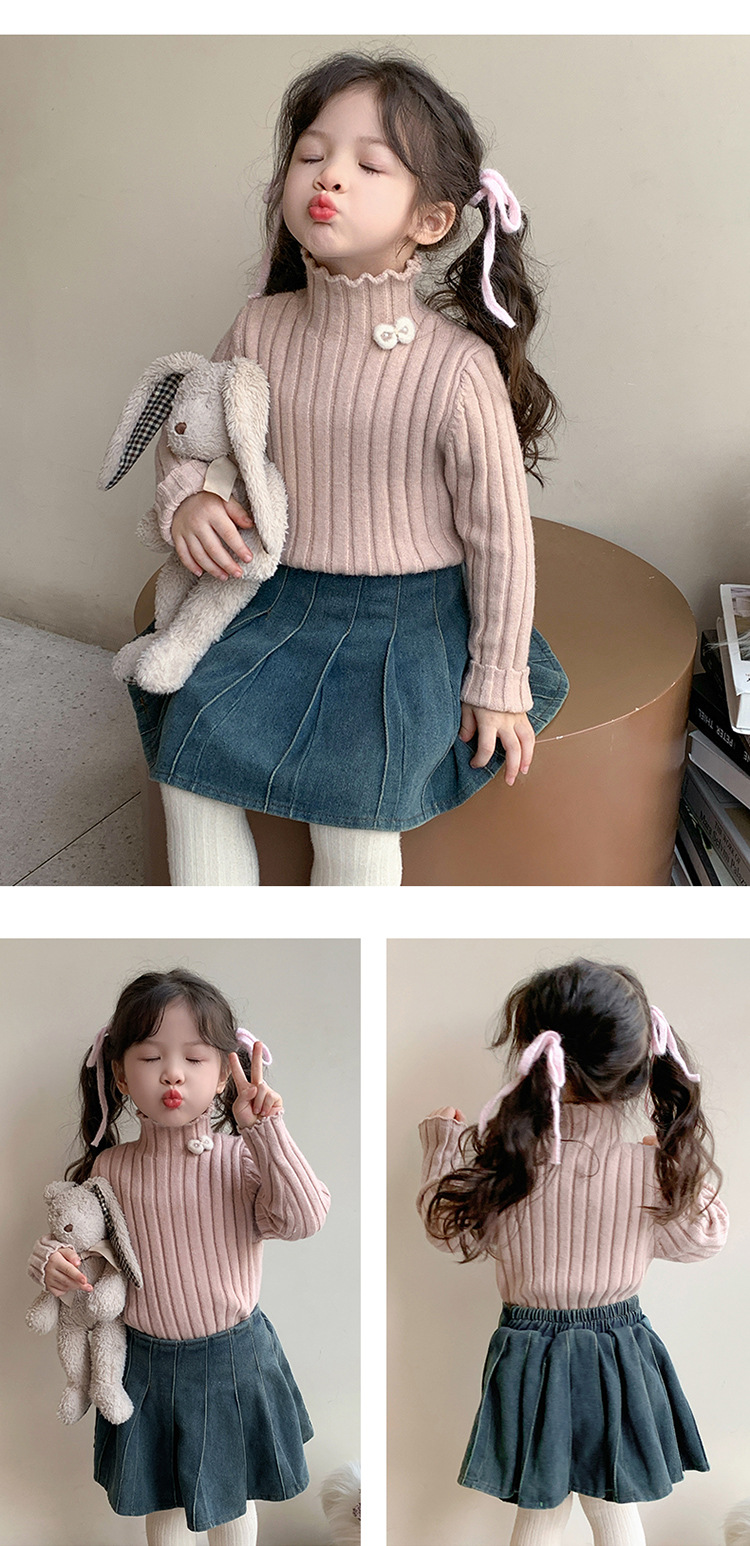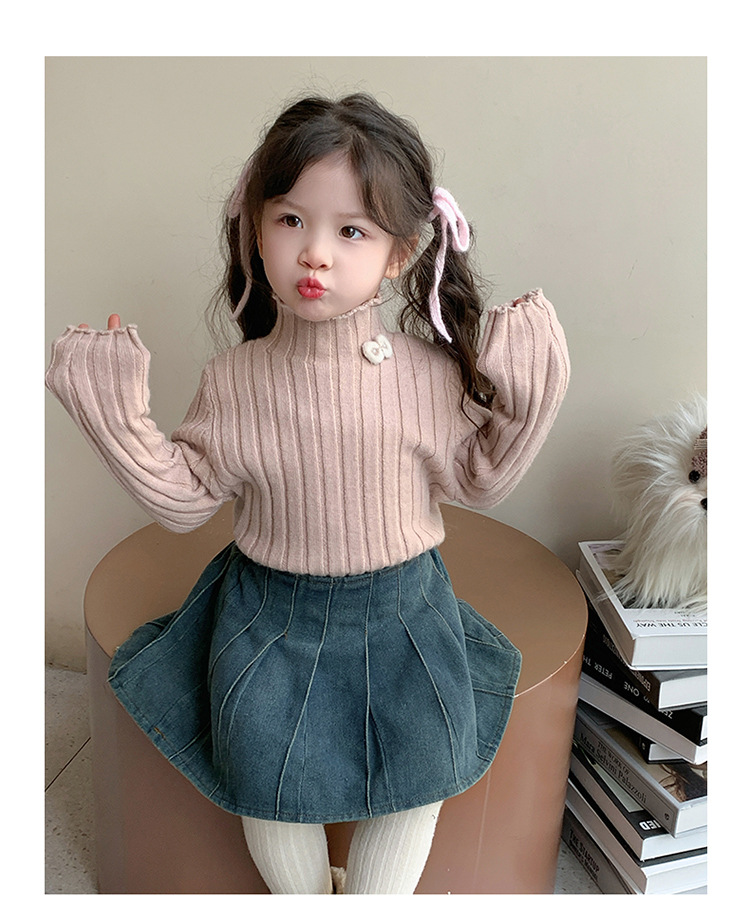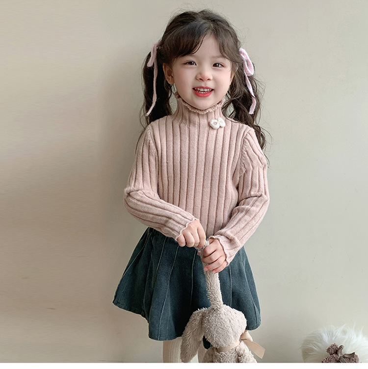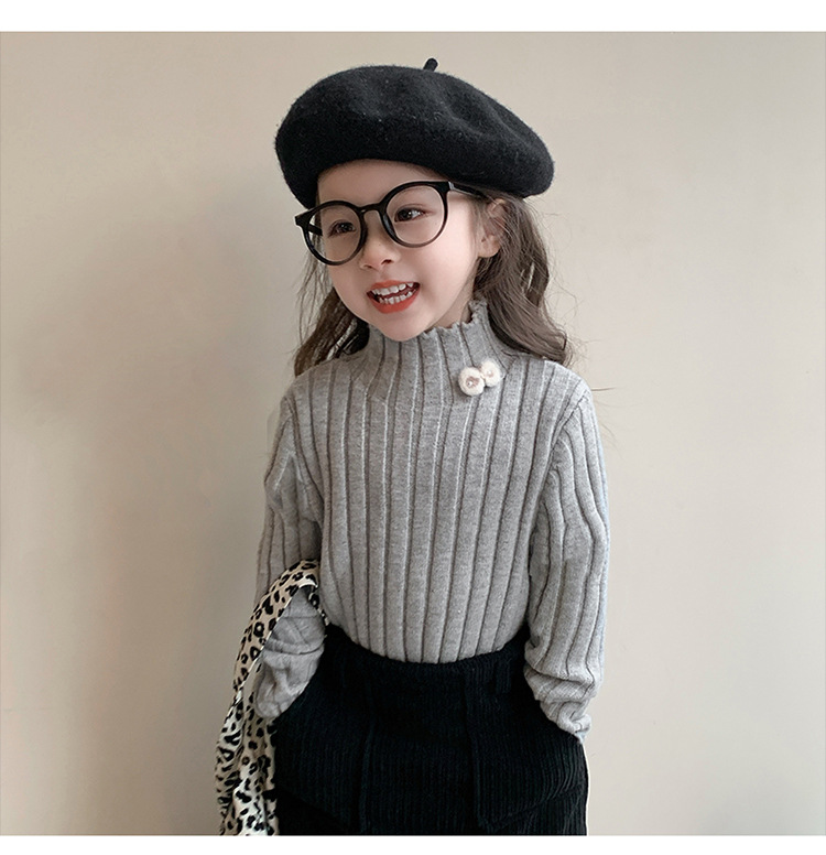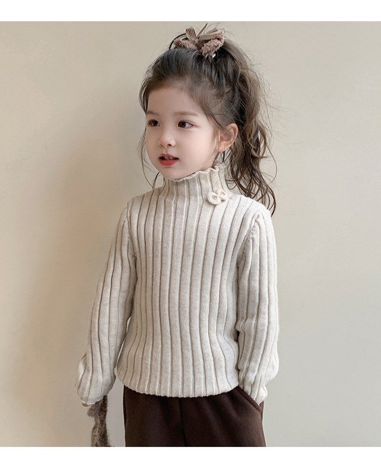 【YW】无忧购韩版女童百搭立领条纹花朵针织毛衣Q63-2(截单后7天发货)