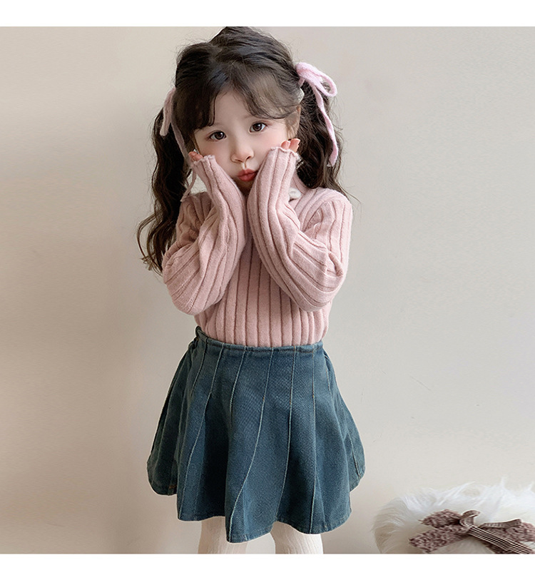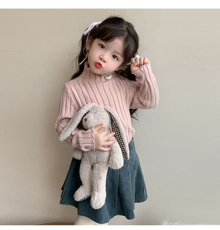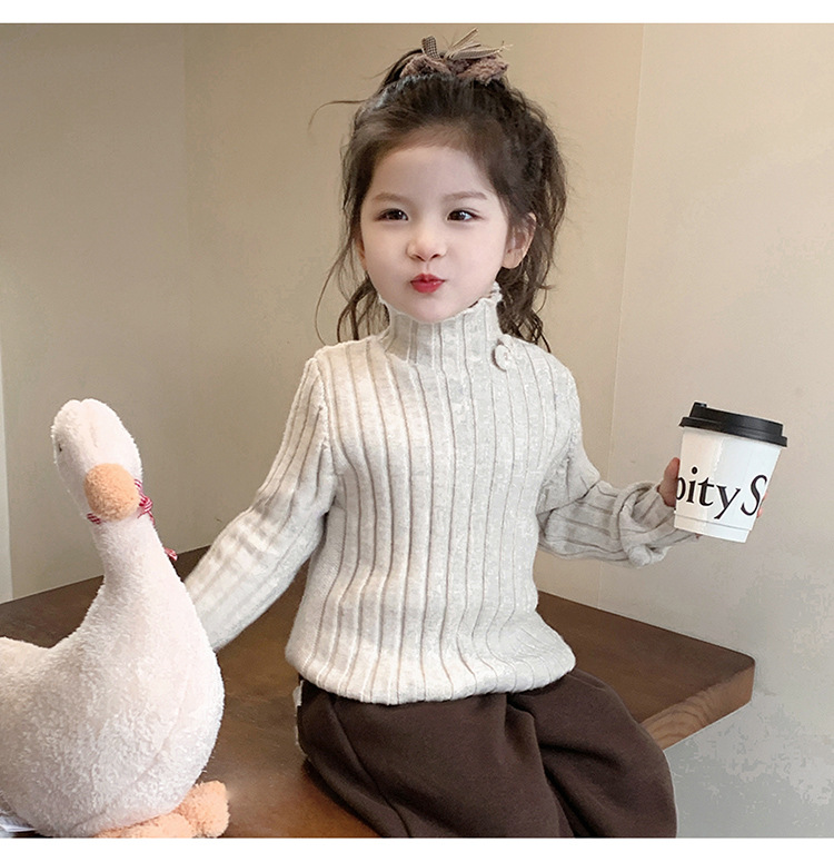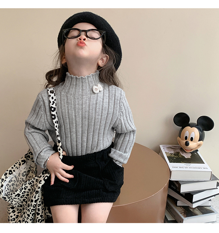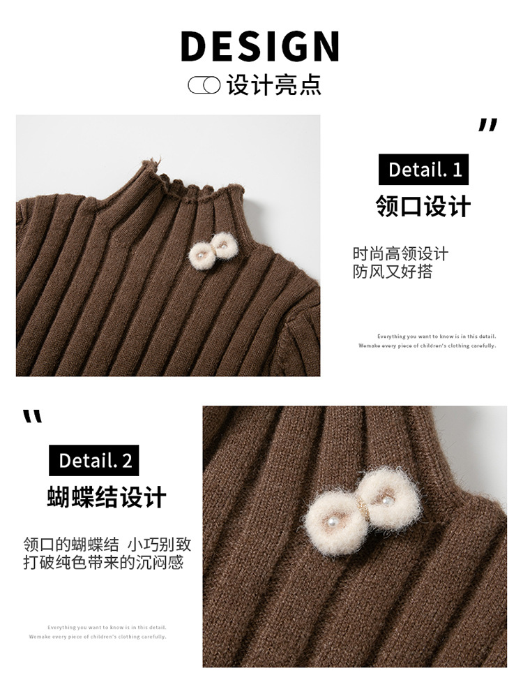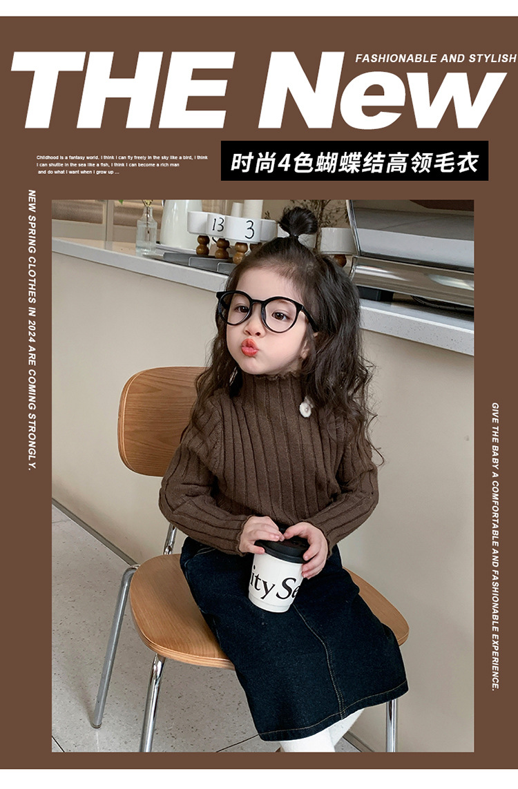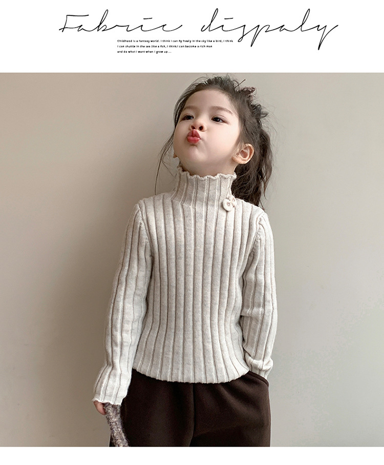 【YW】无忧购韩版女童百搭立领条纹花朵针织毛衣Q63-2(截单后7天发货)