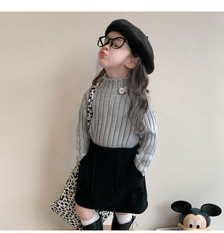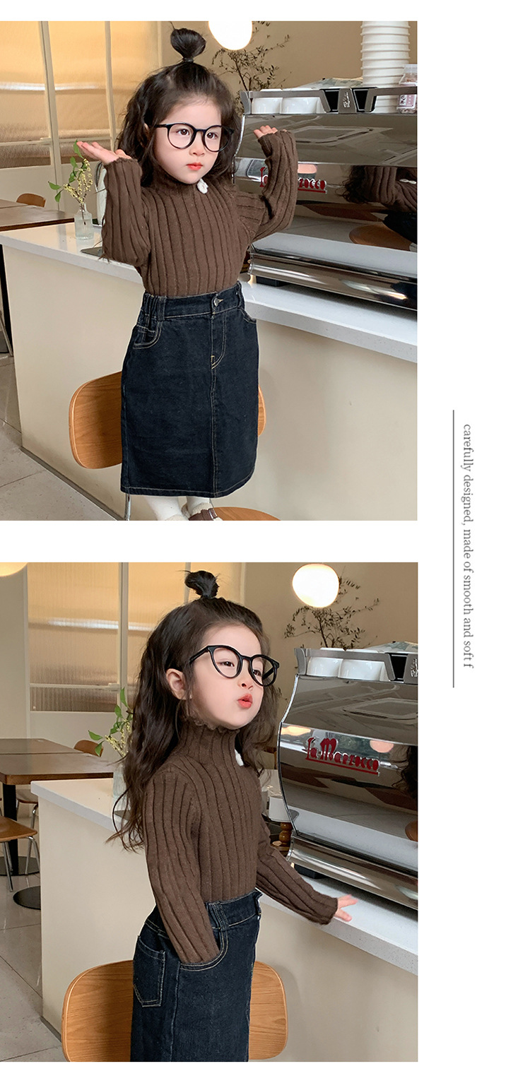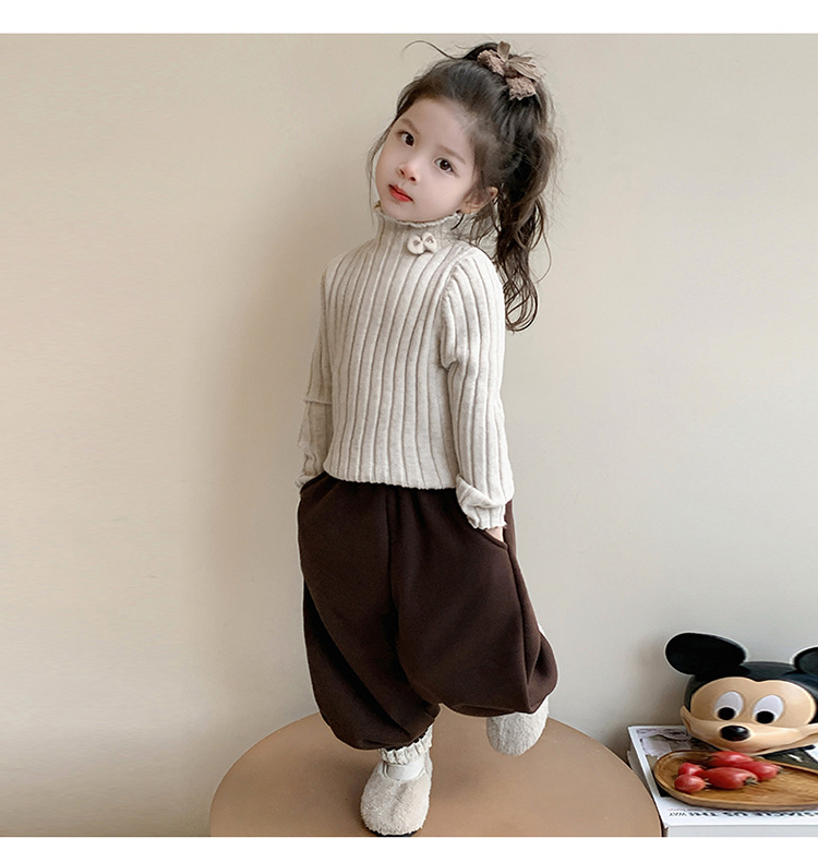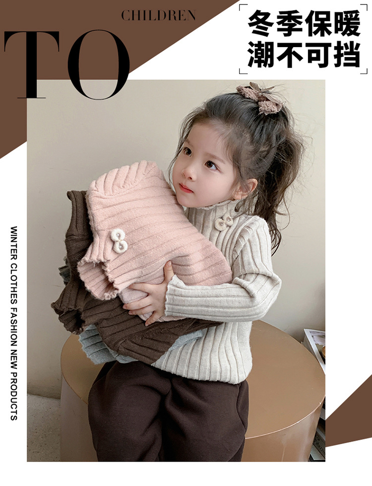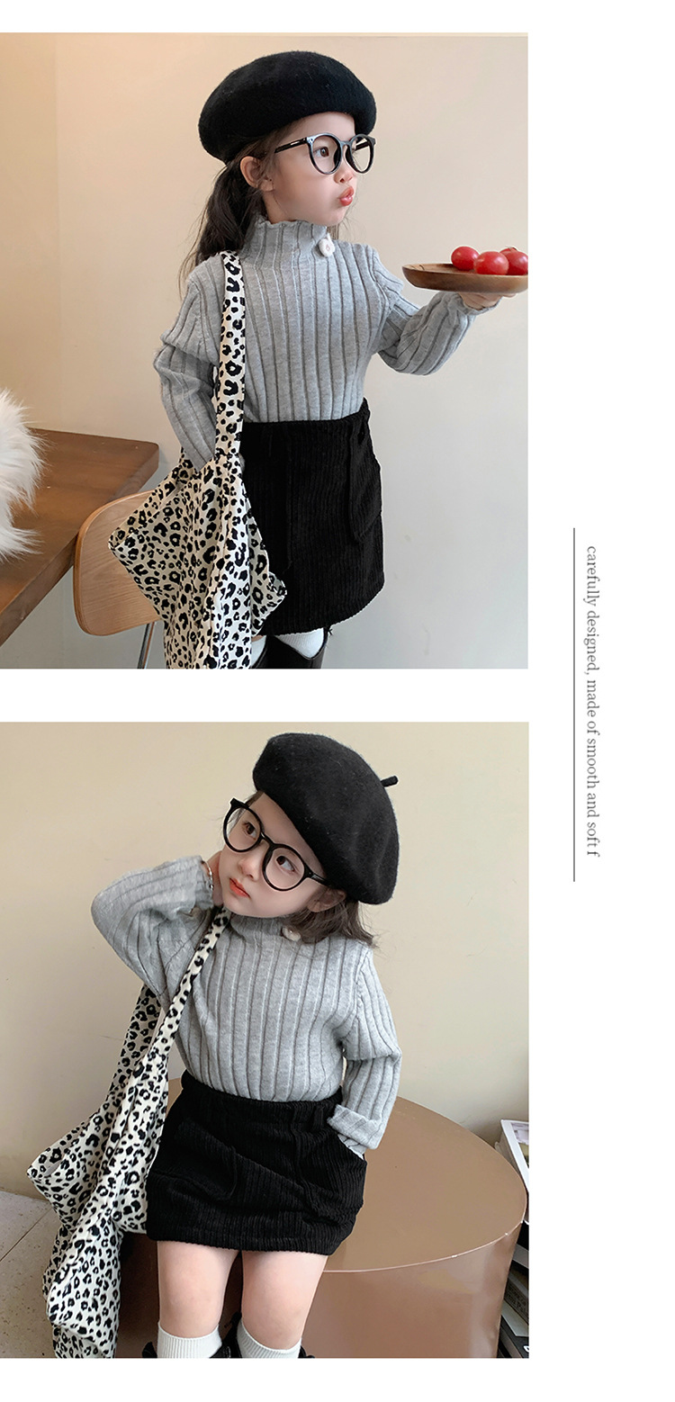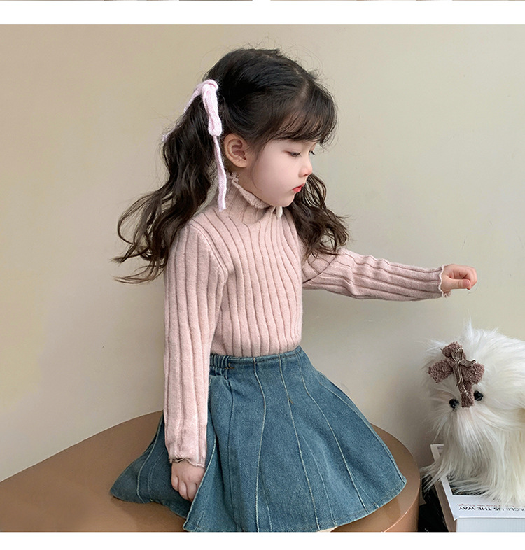 【YW】无忧购韩版女童百搭立领条纹花朵针织毛衣Q63-2(截单后7天发货)