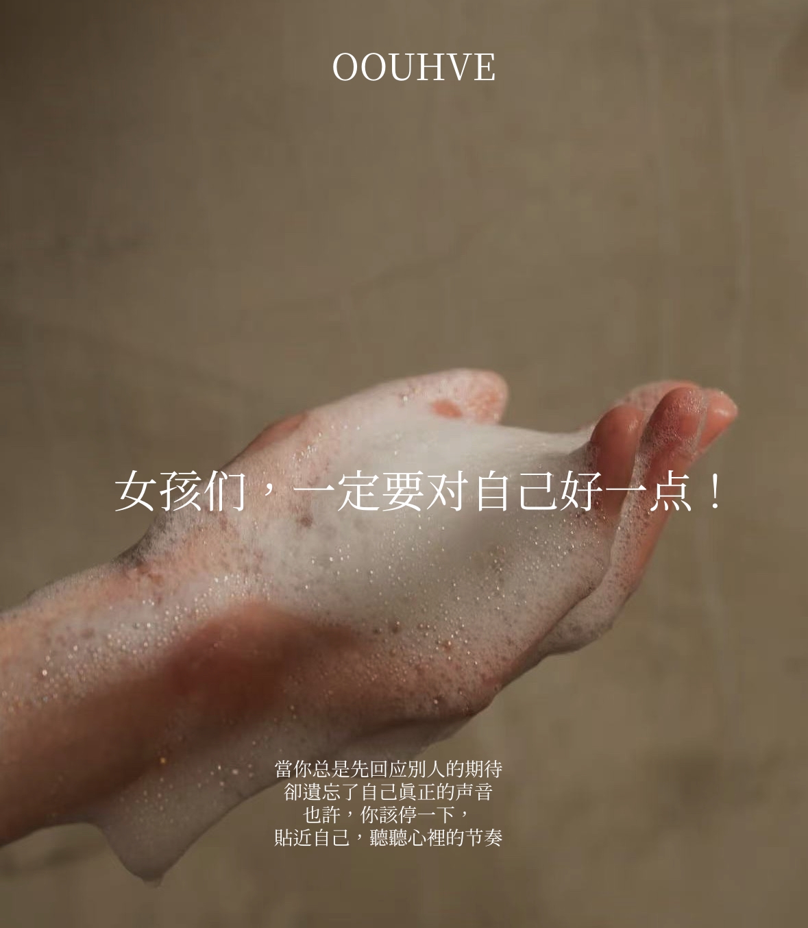 OOUHVE无添加护肤品,以内养外精准护肤 译为“更像自己”通过肌肤是有生命,学会倾听肌肤声音的探讨 赋予产品精神意义与力量,通过优选原料品质温和精纯有效的护肤品,让每一位女性在使用后更加独立坚强。