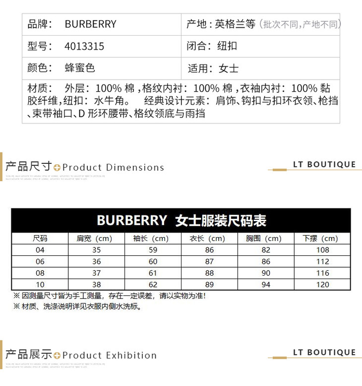 BURBERRY 巴宝莉 女款棉质切尔西版型中长款Trench风衣 卡其色 4013315 70500
