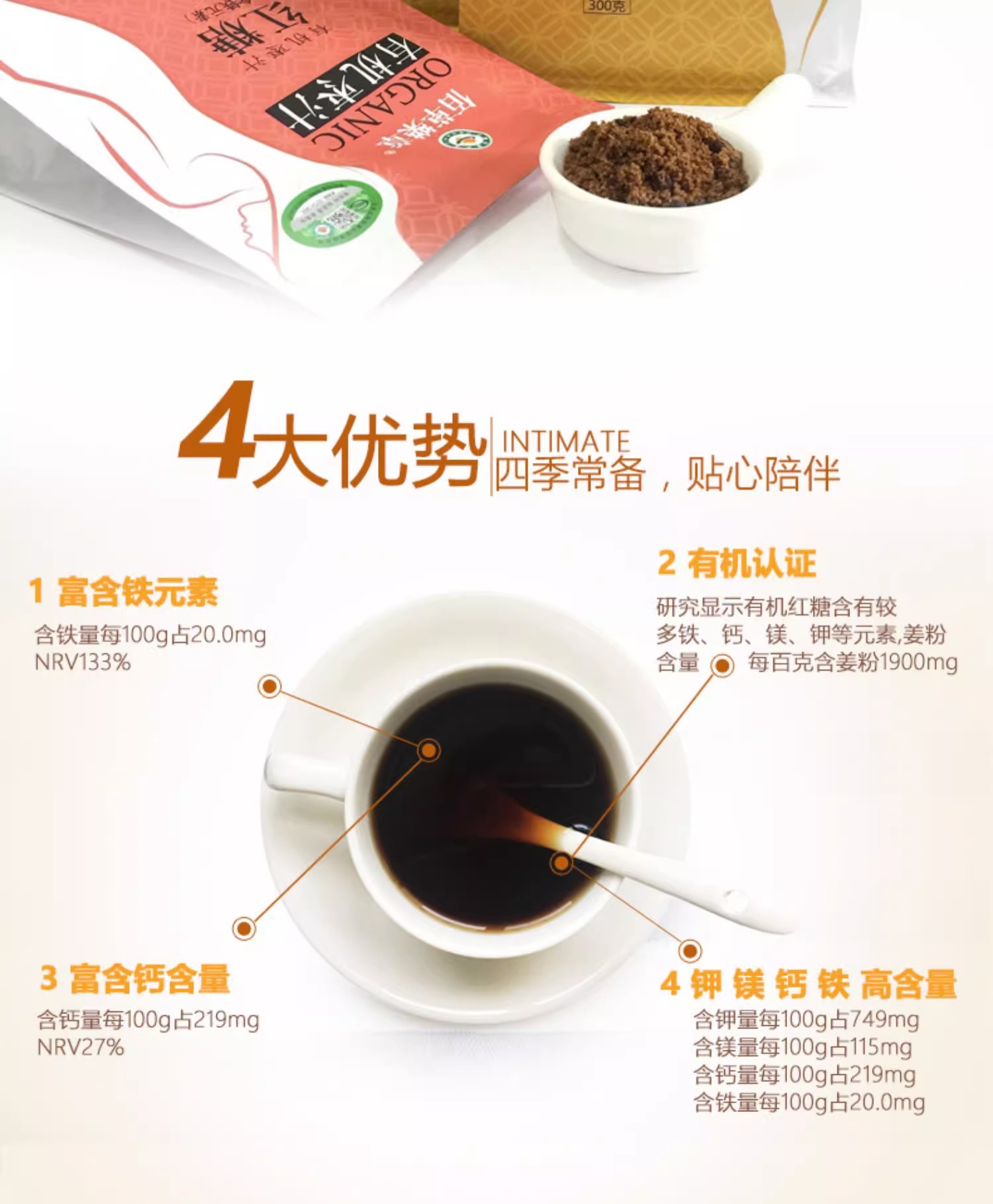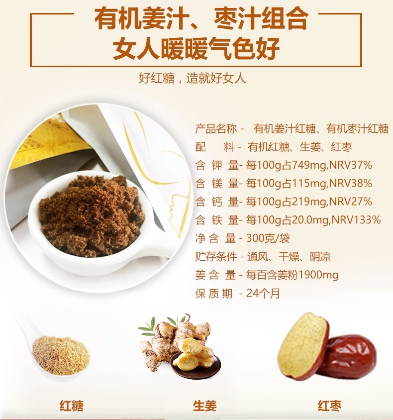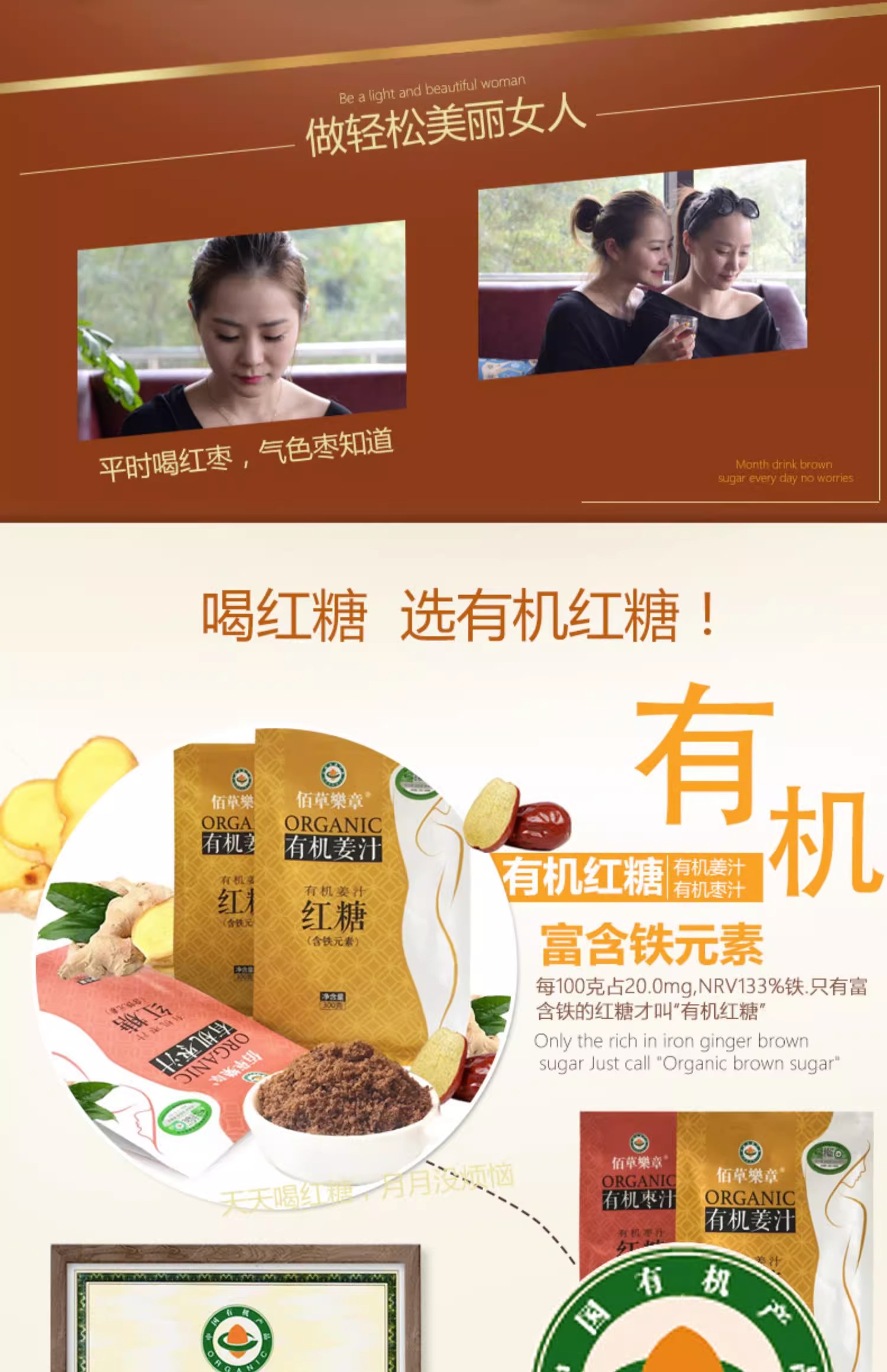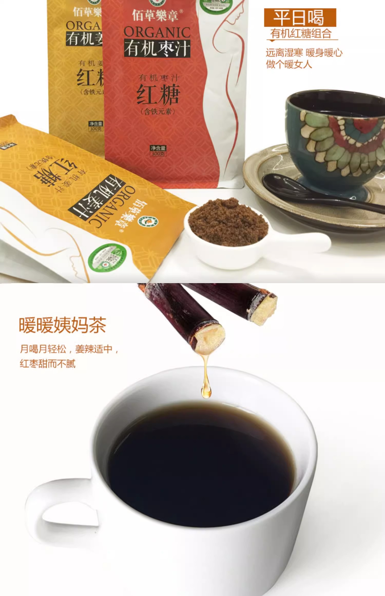 佰草乐章有机红枣红糖姜茶女士姜汤甘蔗冲饮暖暖的300g袋装