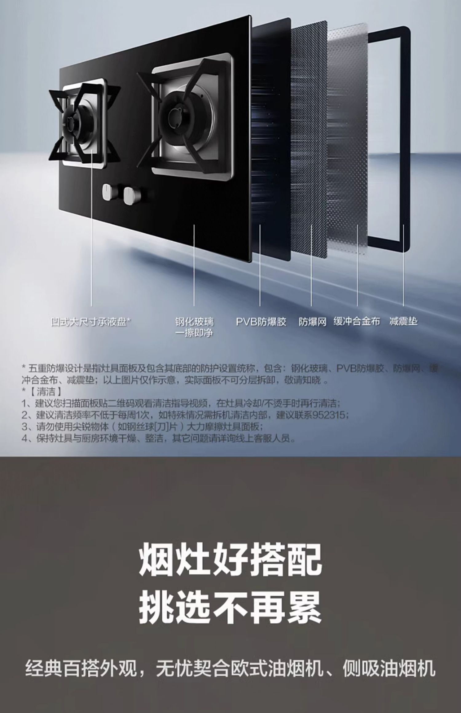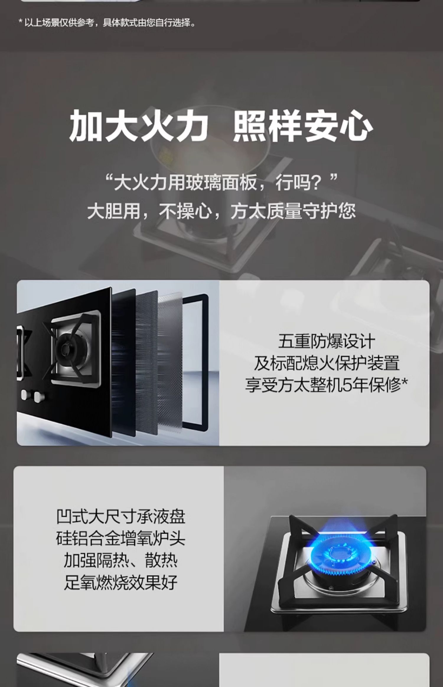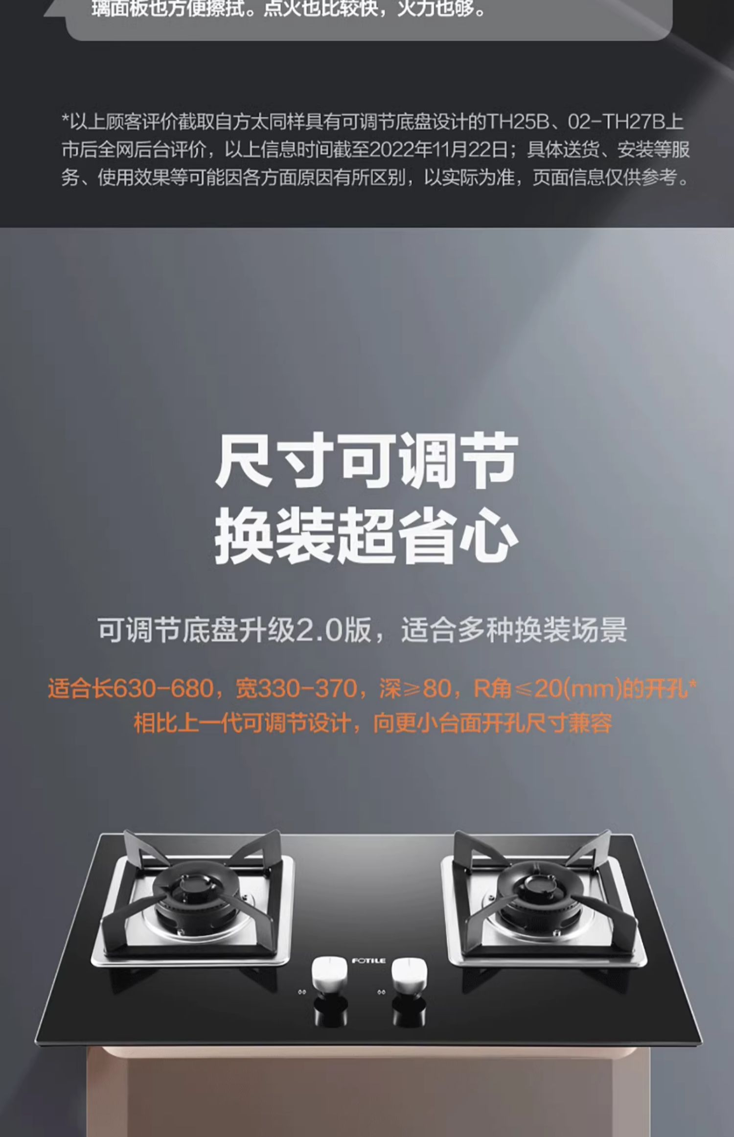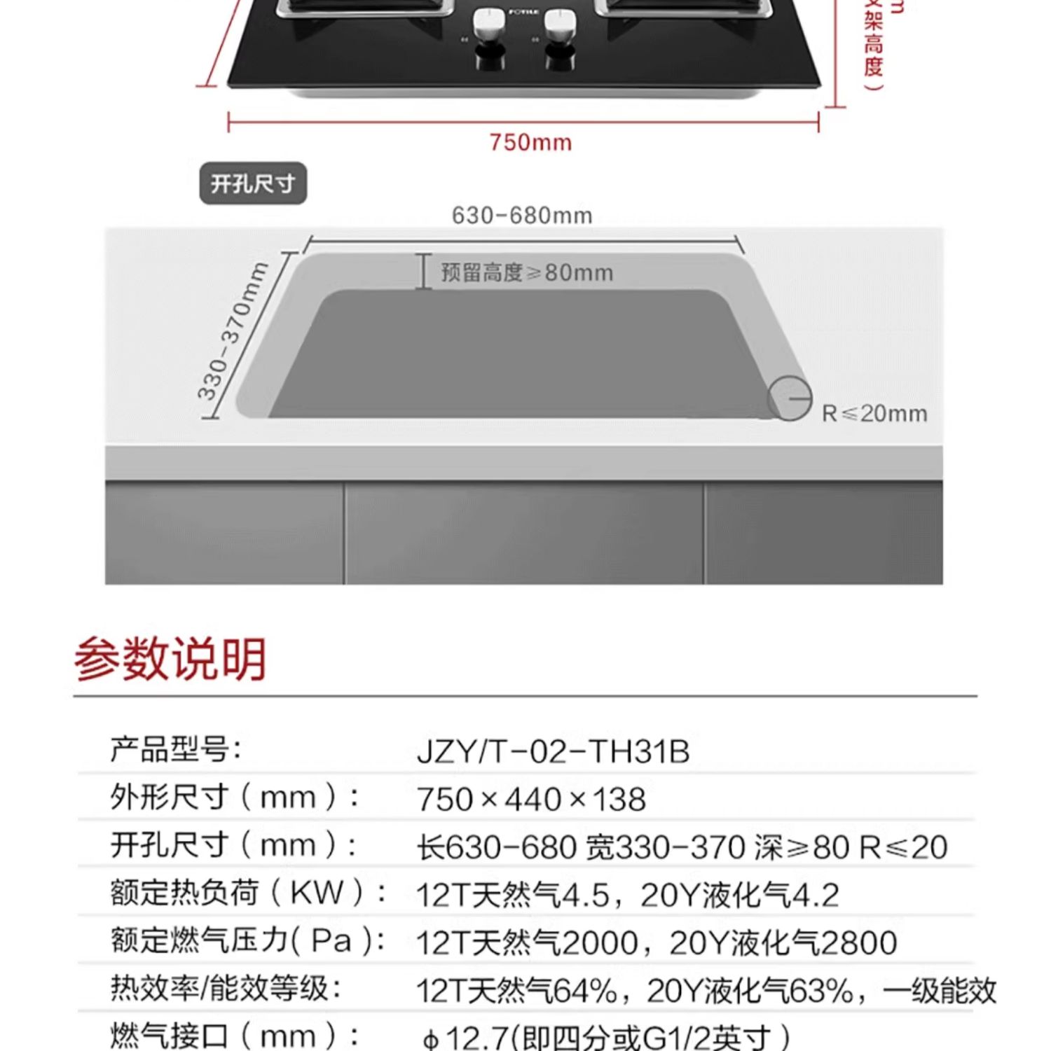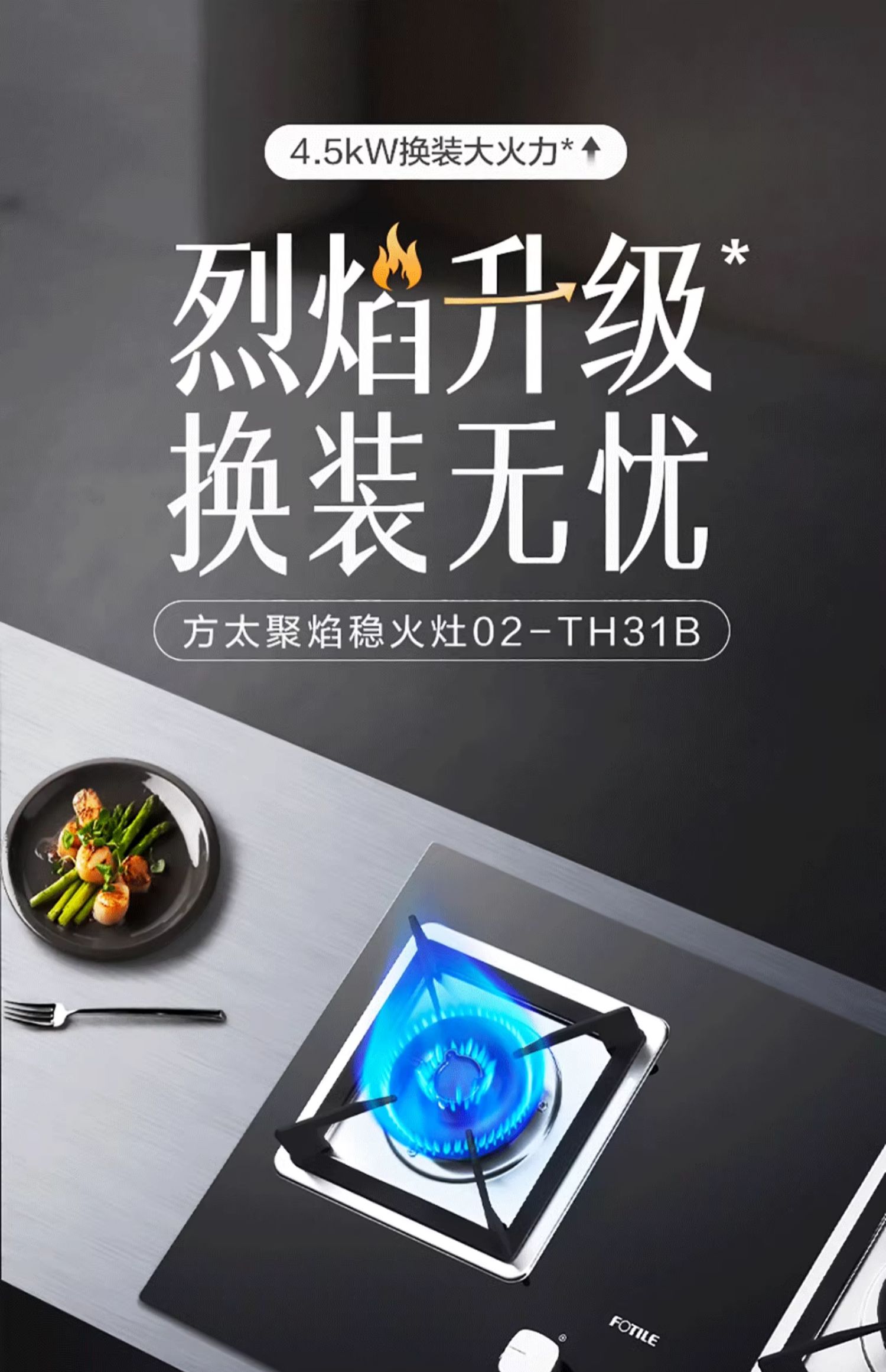 方太燃气灶4.5KW 台嵌两用 02-TH31B可调节底盘 家用换装免扩孔五重防爆面板天然气液化气煤气灶双灶官方正品