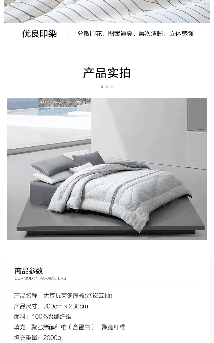 水星家纺 M舒静安眠·负离子净醛·大豆抗菌冬厚被(烟岚云岫)200*230cm