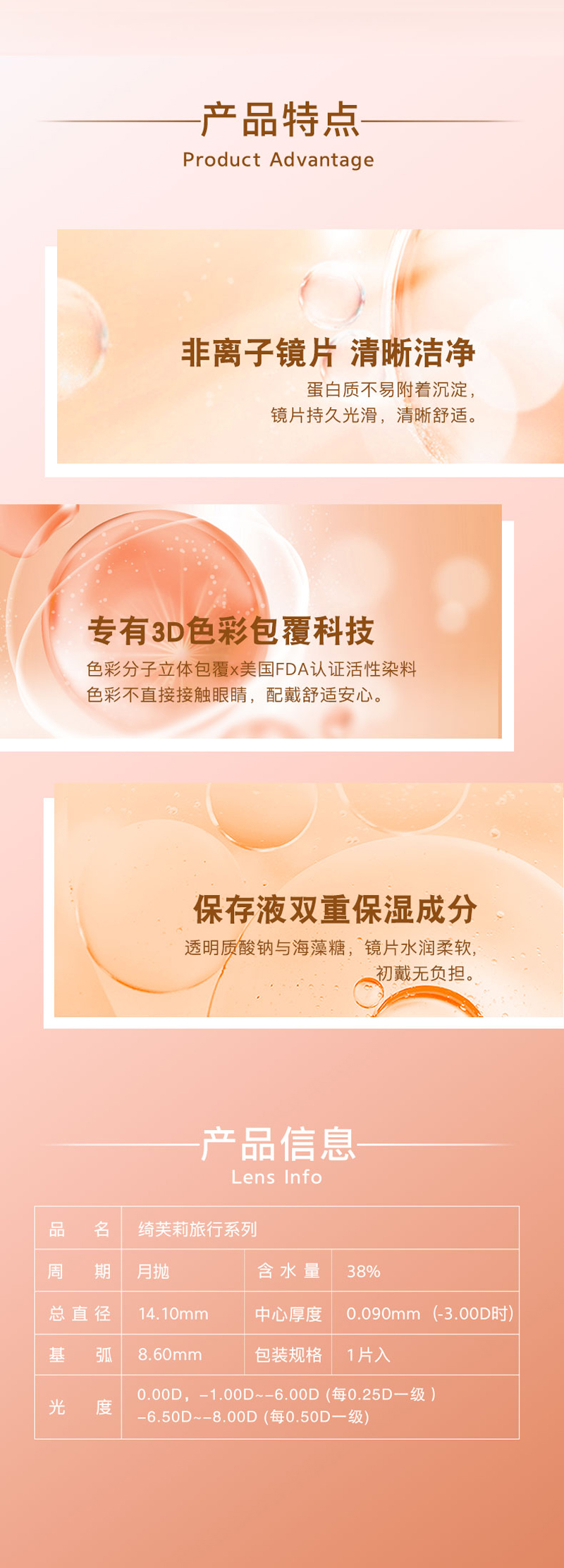 「四川自营仓发货」Givre 绮芙莉 旅行系列 日本美瞳 中文版 月抛1片装
