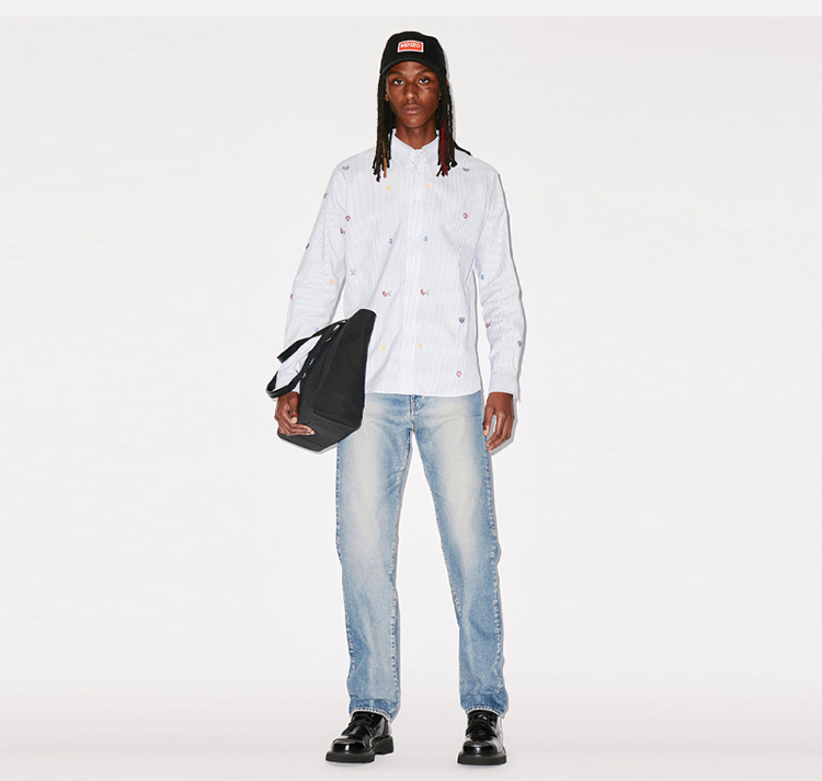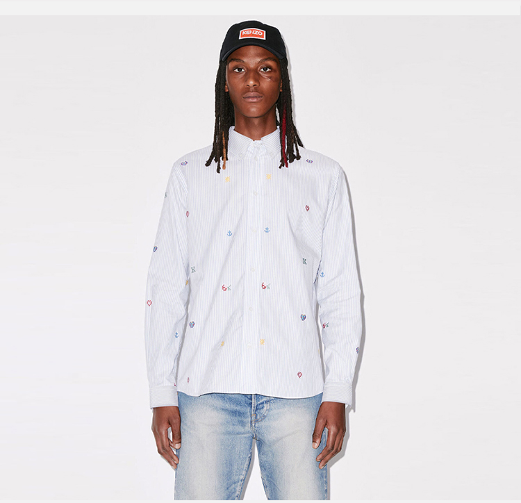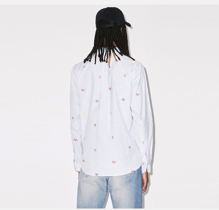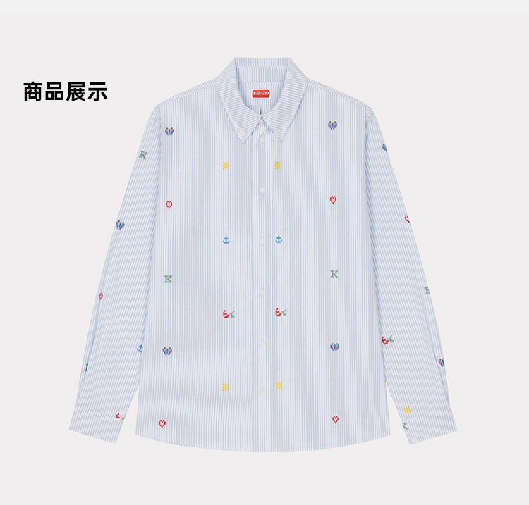 KENZO 高田贤三 男士棉质徽标印花条纹休闲长袖衬衫 浅蓝色 FD55 CH410 9LJ 63