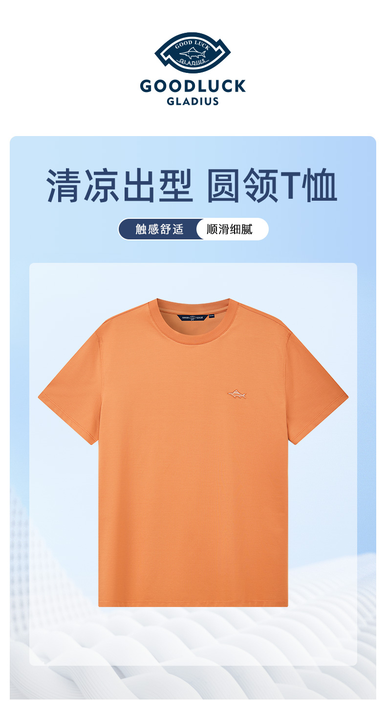 GOOD LUCK/德鲨弹力轻薄干爽舒适条纹圆领短袖T恤LY13526