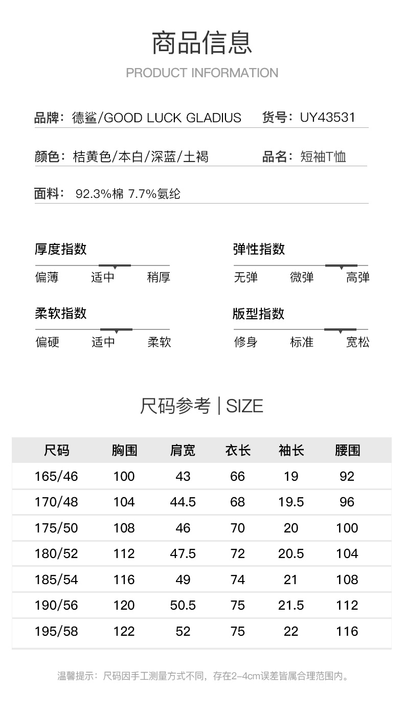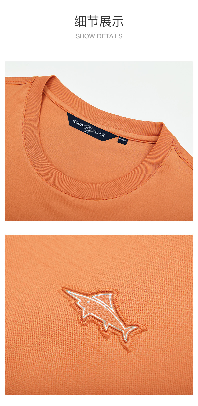 【棉混纺】德鲨2026夏款短袖圆领T恤男休闲上衣百搭打底衫