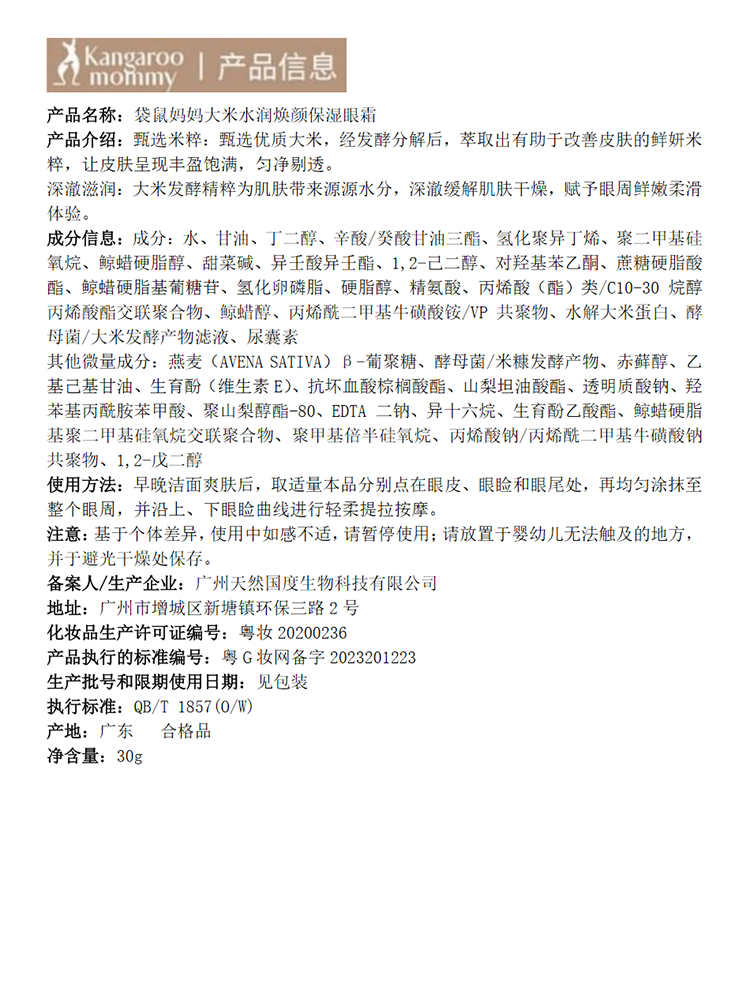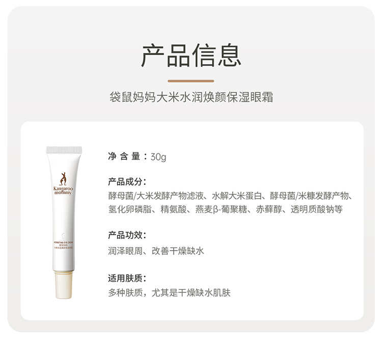 【焕亮眼霜】 保湿滋润 淡化眼周细纹 对抗眼部松弛 提亮双眸 大米水润焕颜保湿眼霜30g