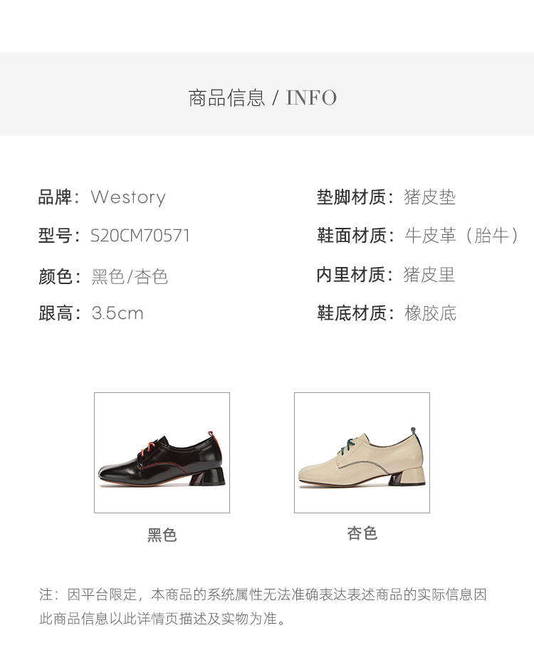 westory2020早秋新品真皮休闲系带粗跟时尚单鞋S20CM70571