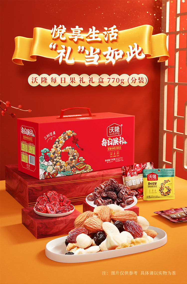 沃隆每日坚果770g 礼盒装 春节年货 坚果 零食大礼包 伴手礼 送长辈 2023年底款