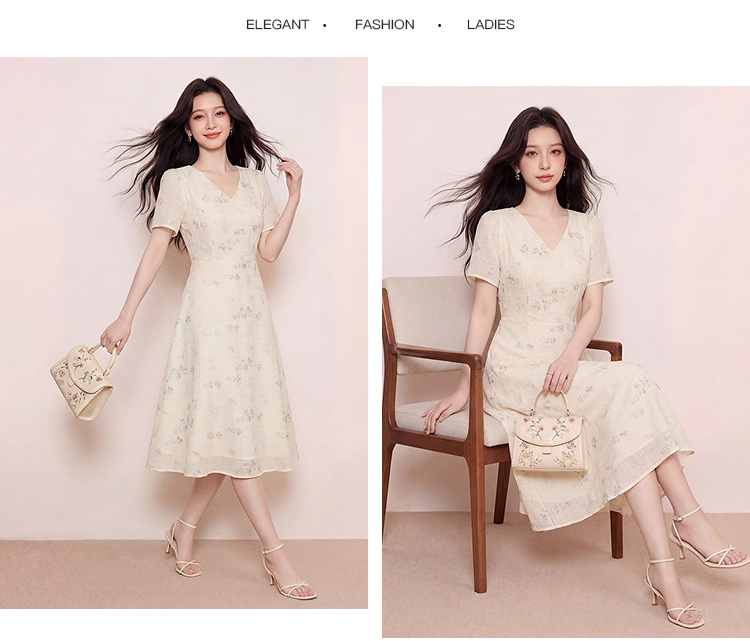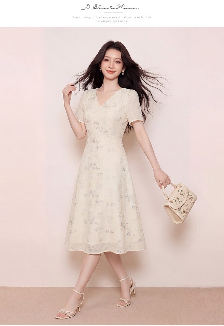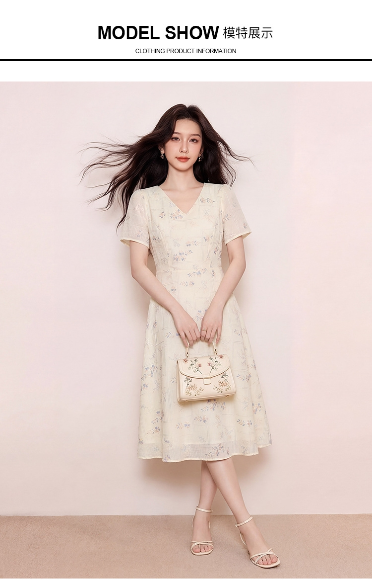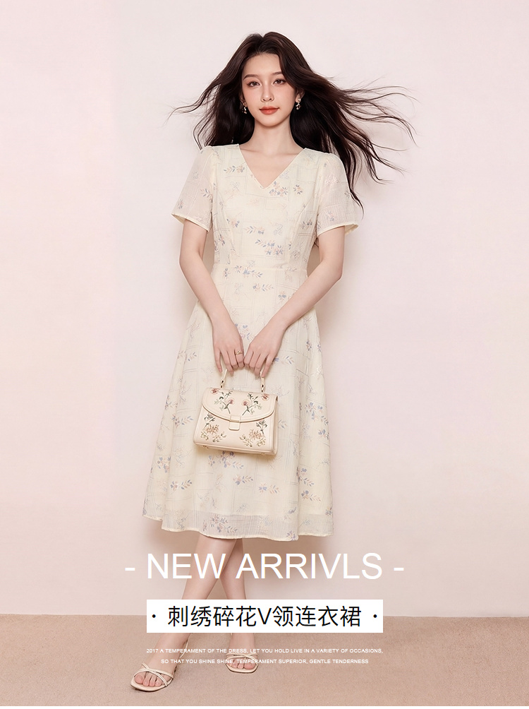 奢姿大码女装2026夏季减龄刺绣碎花V领连衣裙胖妹妹温柔风裙子9962894623