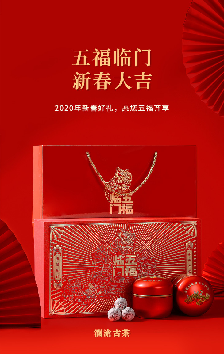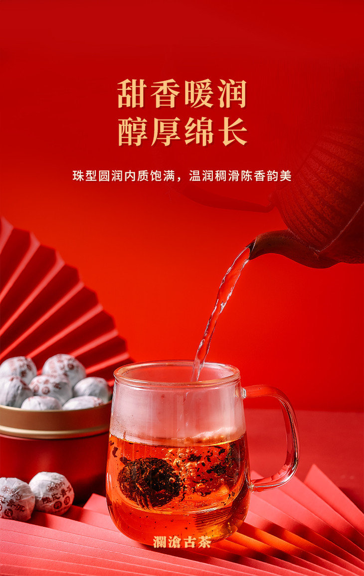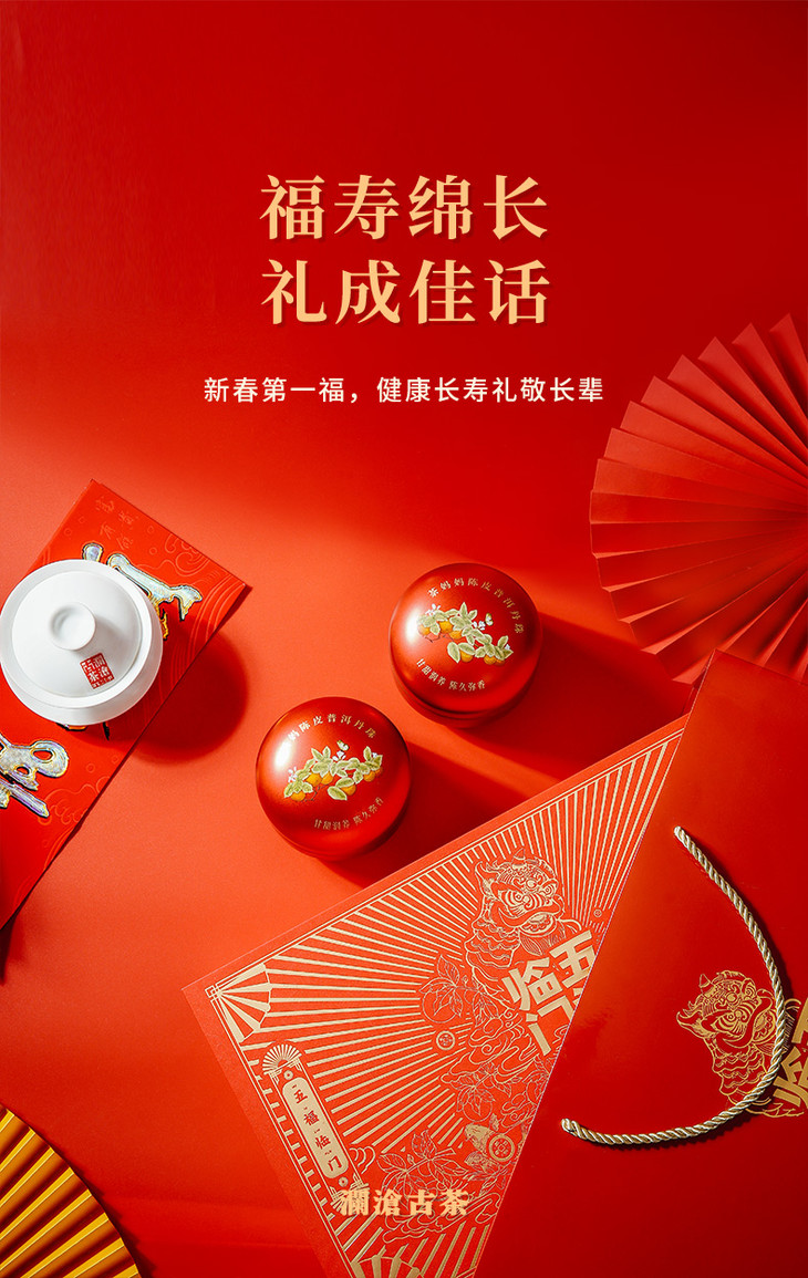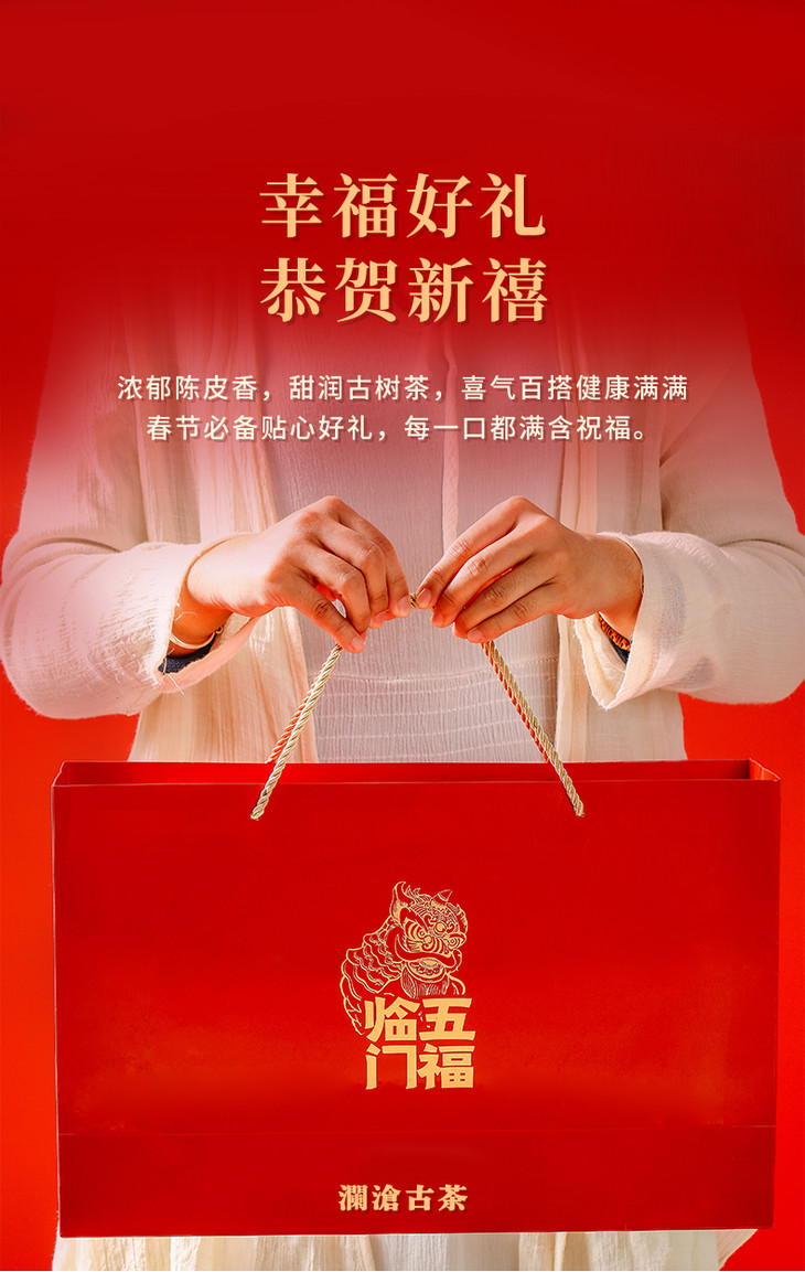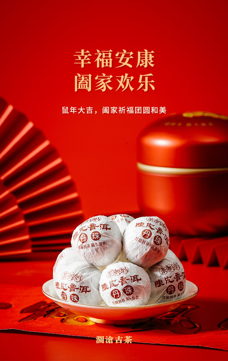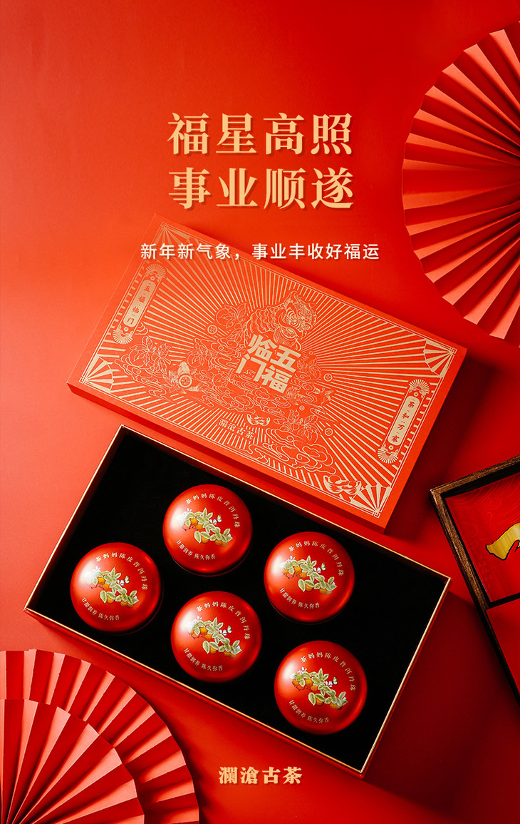 澜沧古茶五福临门陈皮普洱丹珠龙珠普洱茶熟茶礼盒装500g