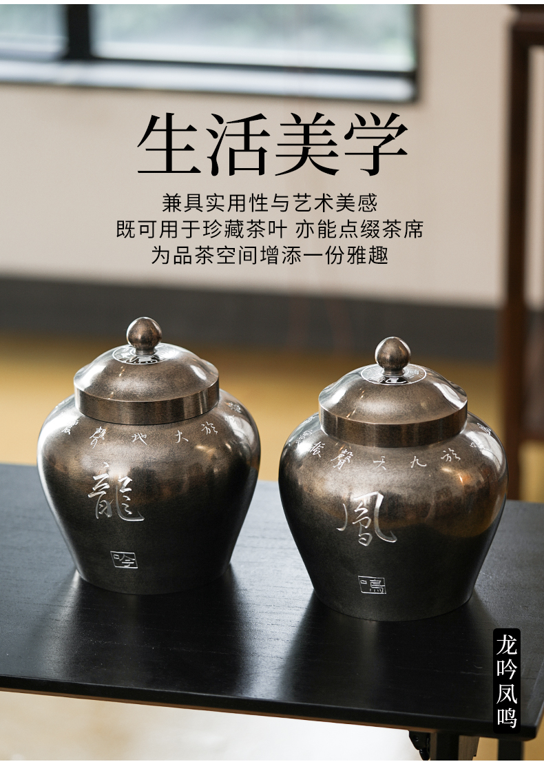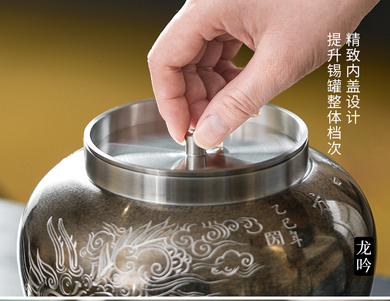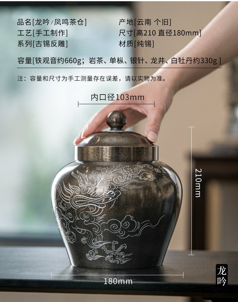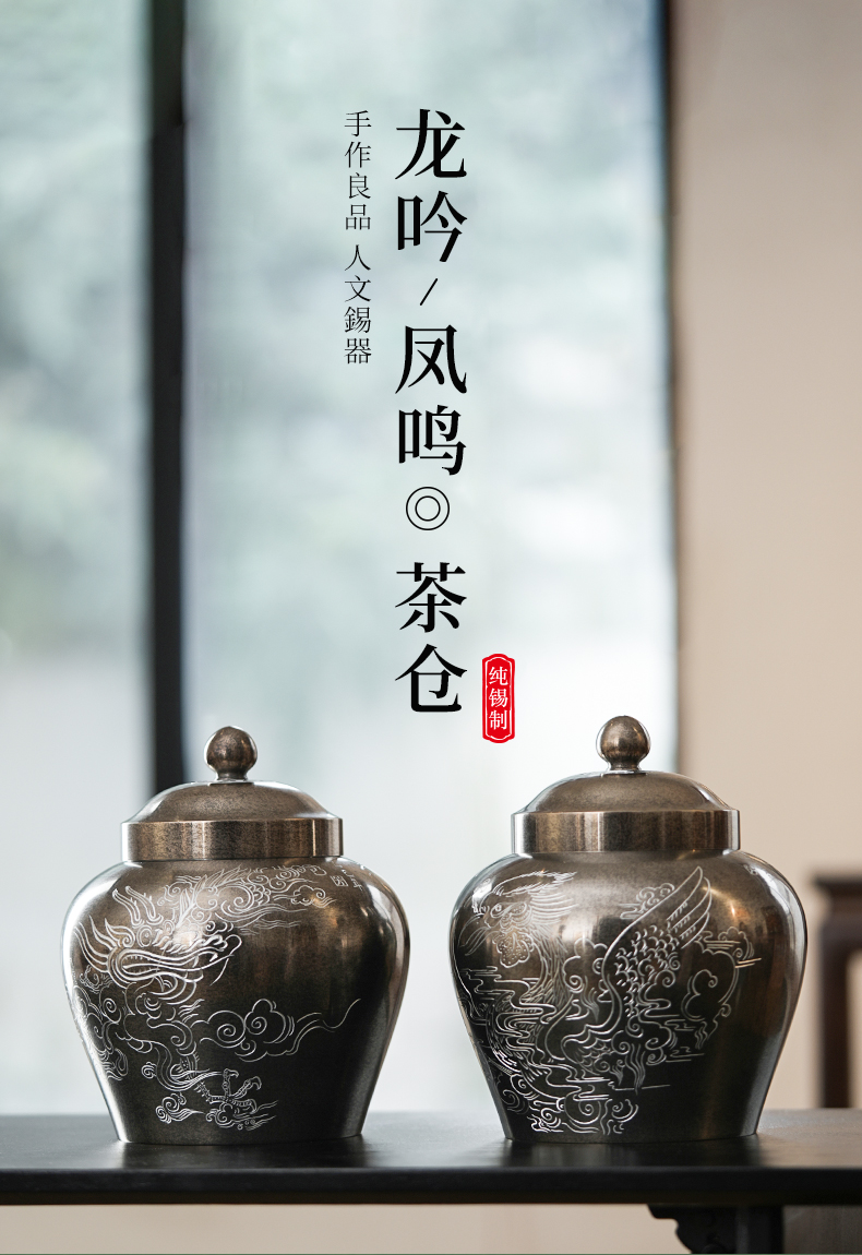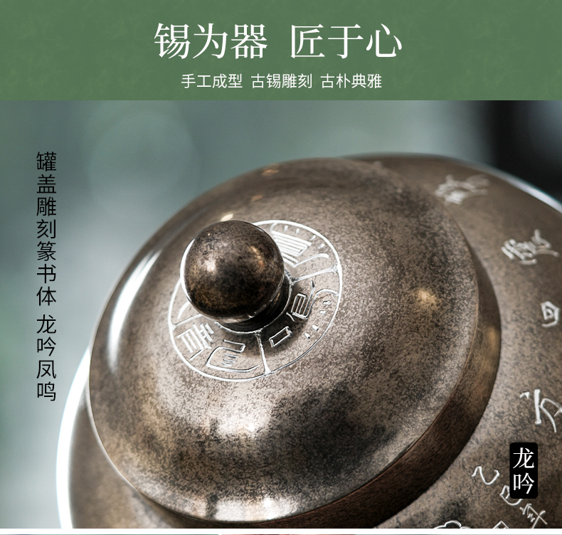 斑锡龙龙吟凤鸣茶仓锡罐中号高纯锡茶叶罐龙吟凤鸣茶仓密封储茶罐手工个旧锡器
