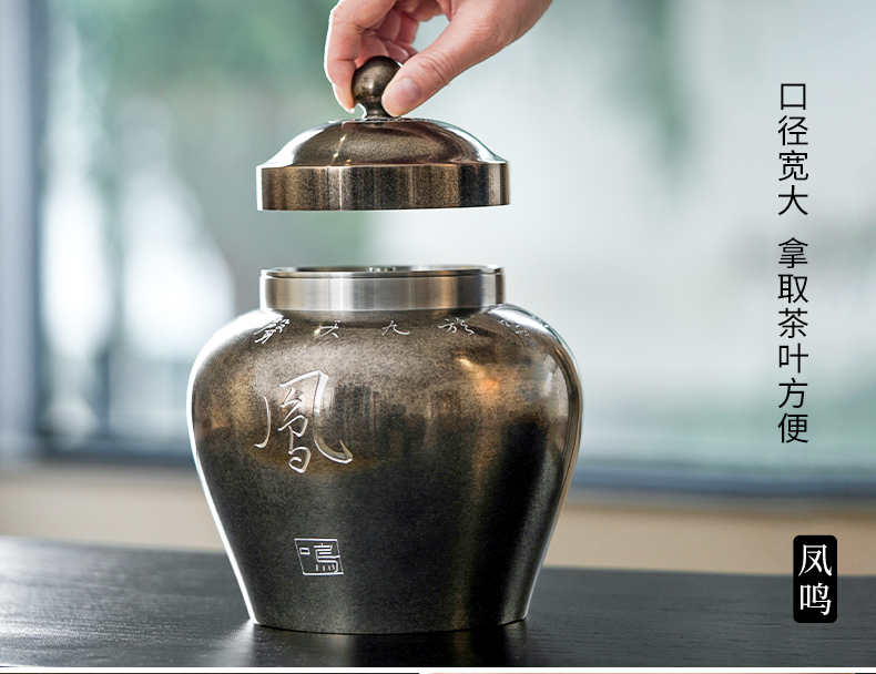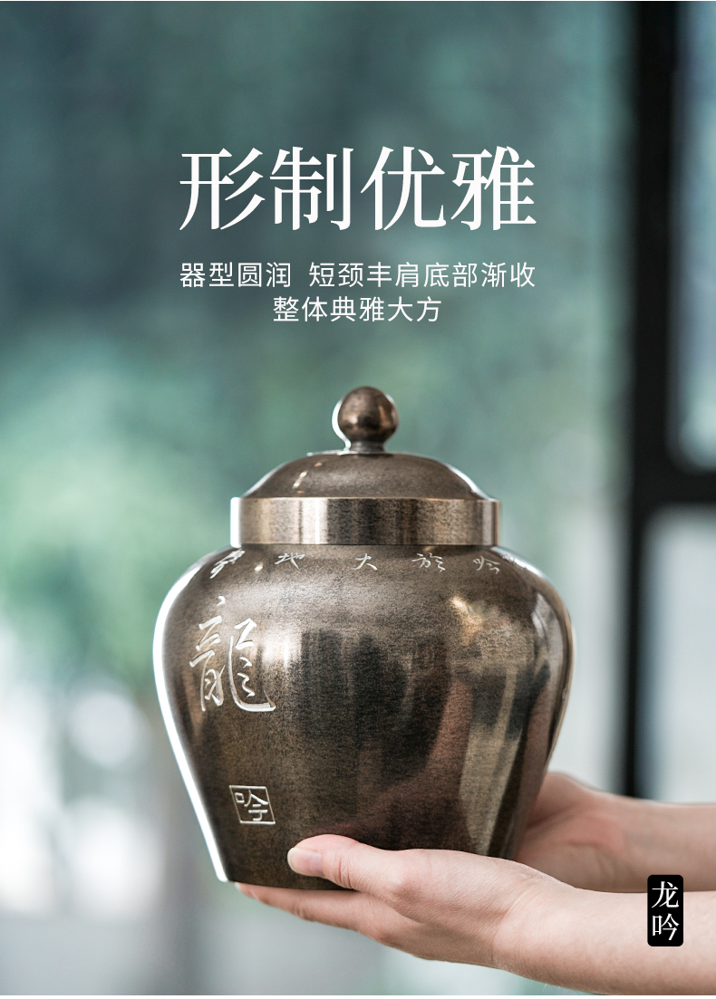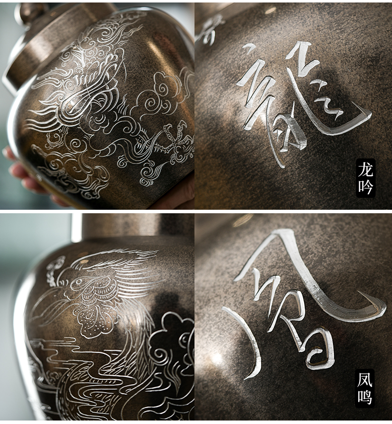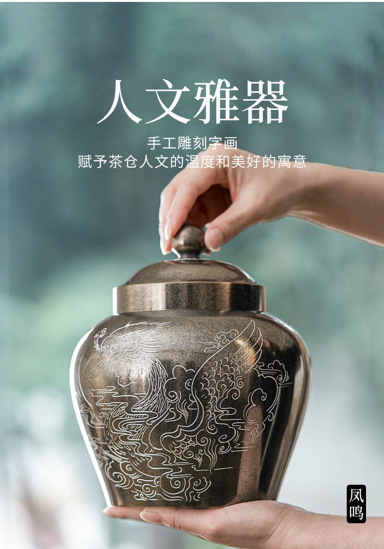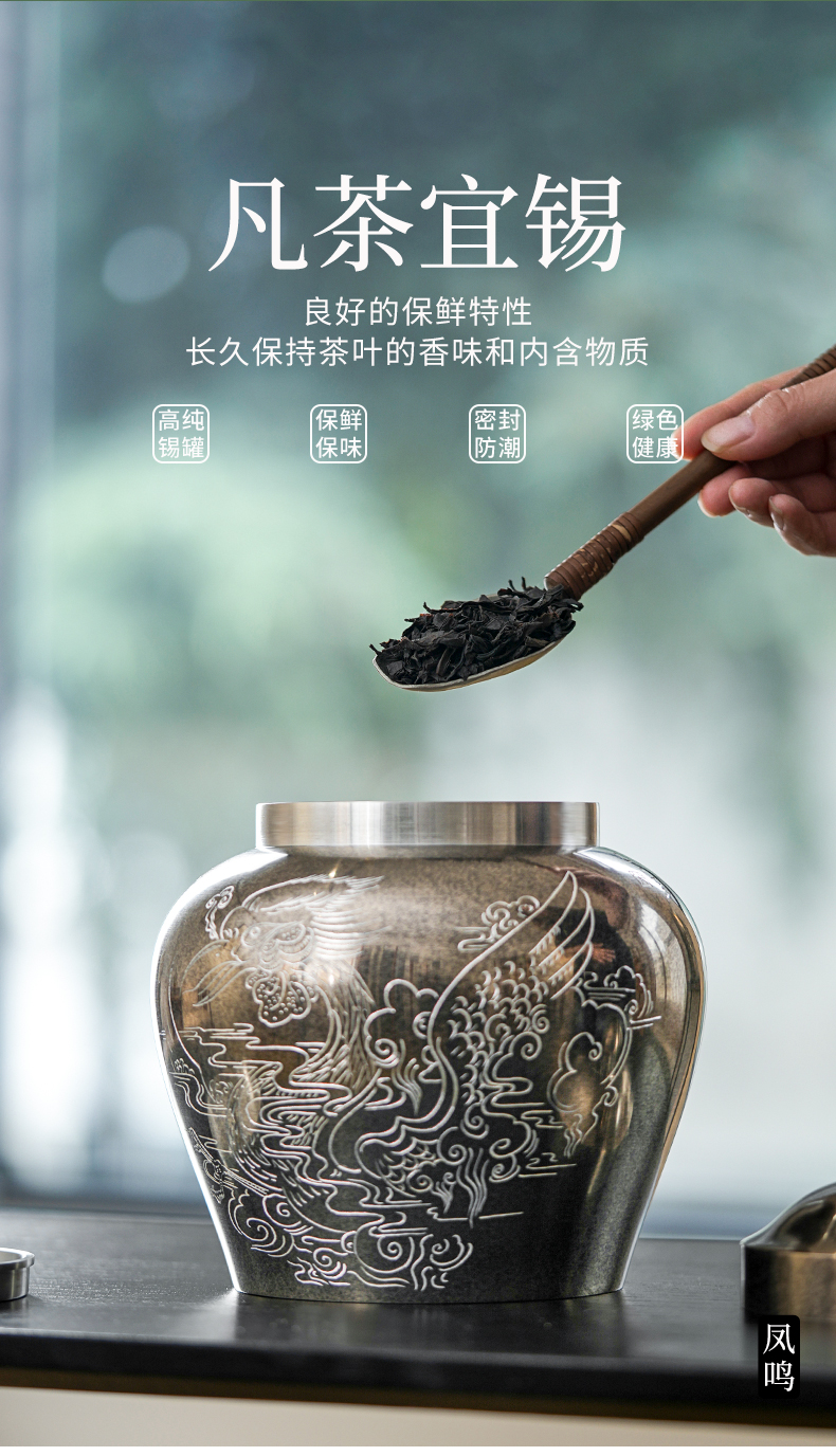 斑锡龙龙吟凤鸣茶仓锡罐中号高纯锡茶叶罐龙吟凤鸣茶仓密封储茶罐手工个旧锡器
