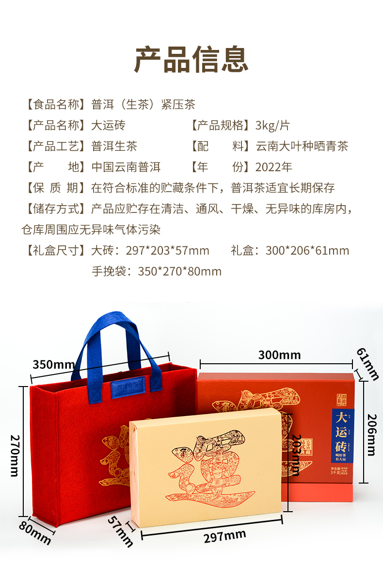【预售】澜沧古茶2022年大运砖普洱茶生茶3000g/砖