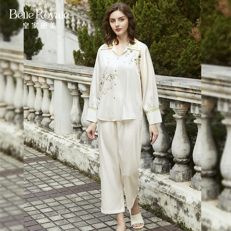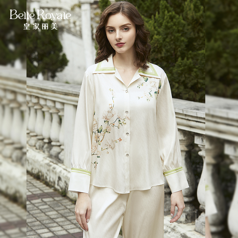 皇家丽美珠光缎开衫家居服长袖长裤睡衣JJT9943