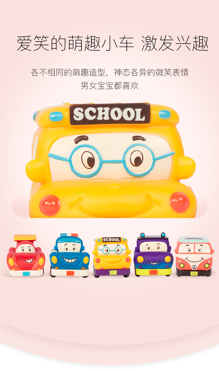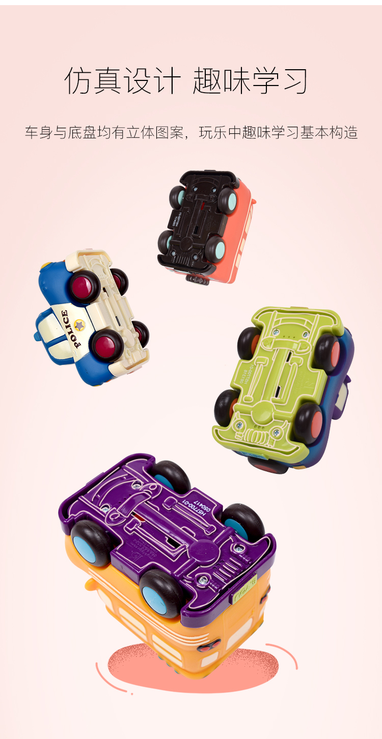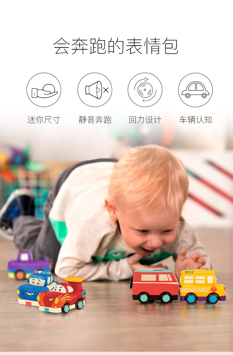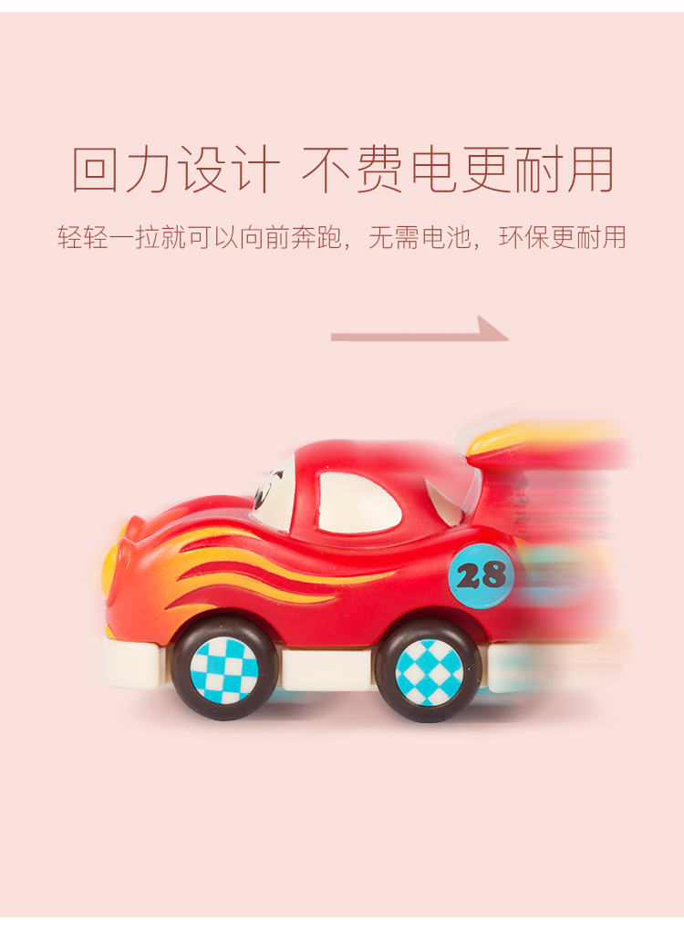 1岁+ | 美国B-toys比乐 小小回力车 软胶发条车惯性小汽车滑行玩具车