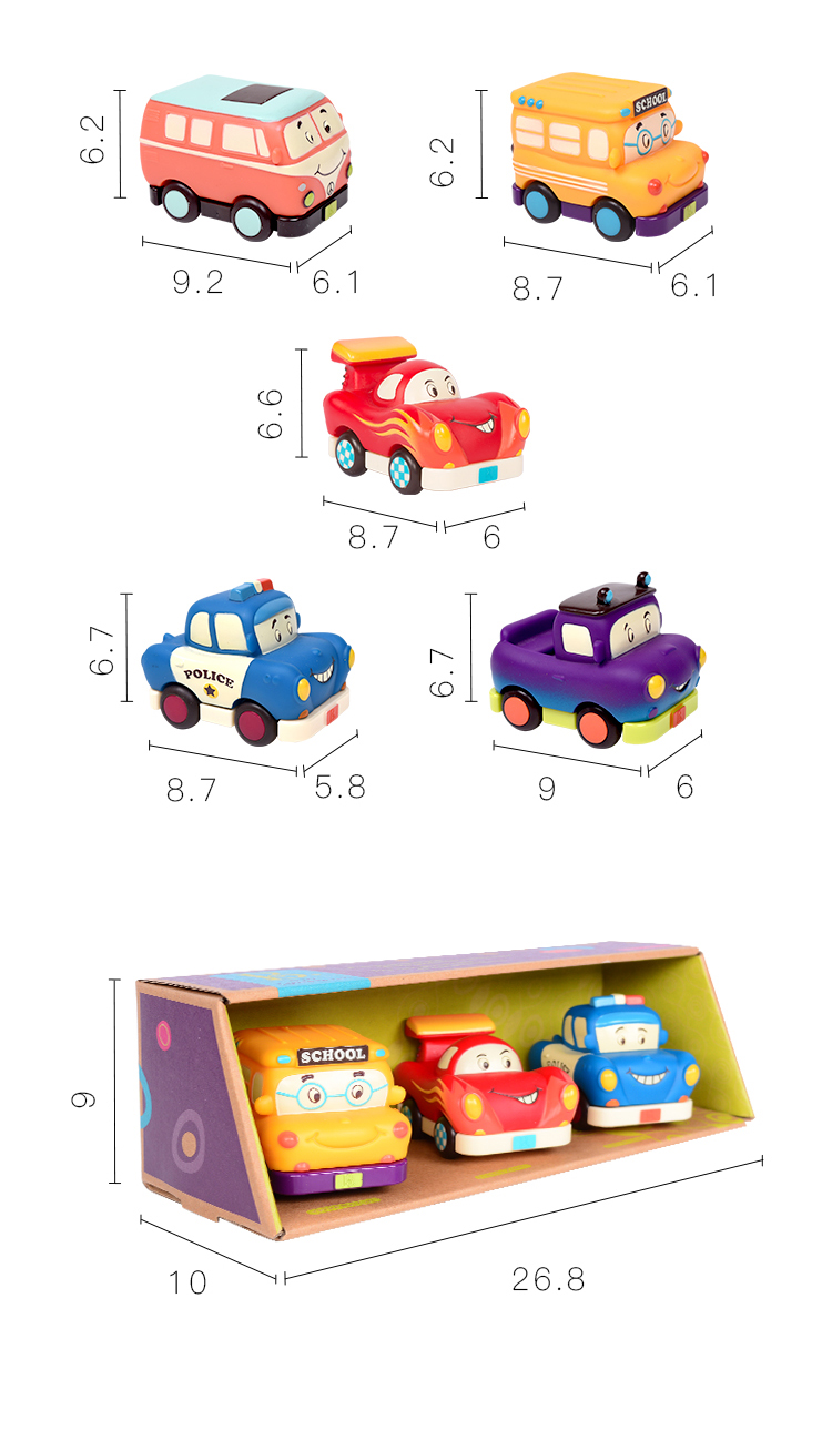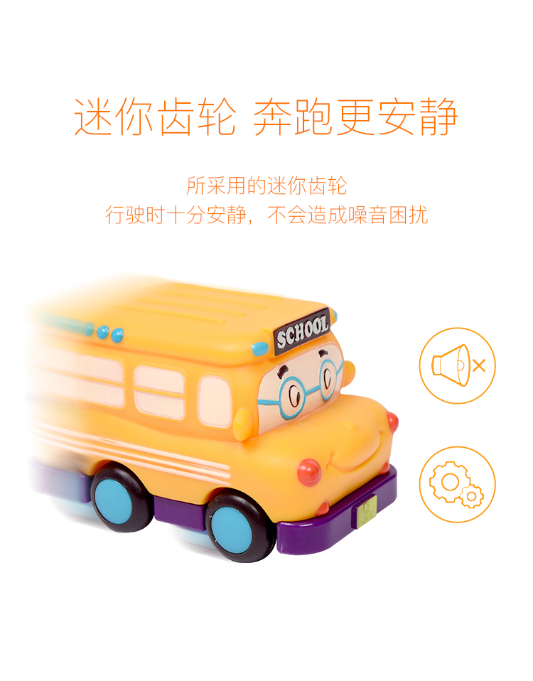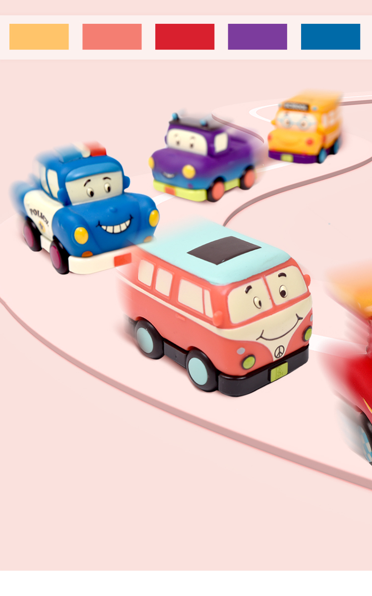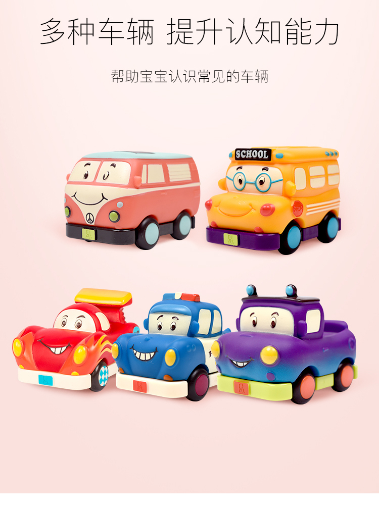 1岁+ | 美国B-toys比乐 小小回力车 软胶发条车惯性小汽车滑行玩具车
