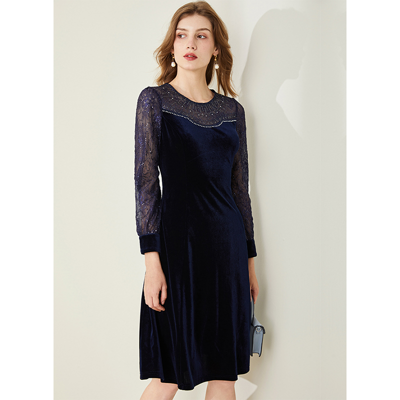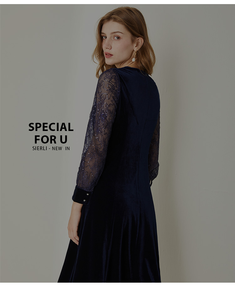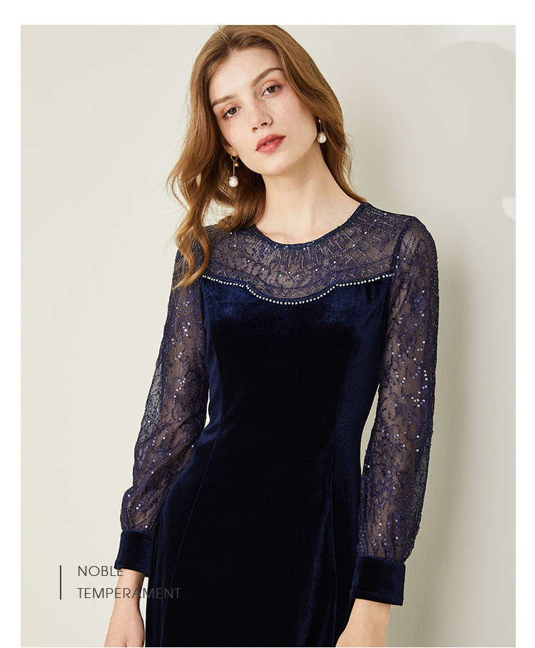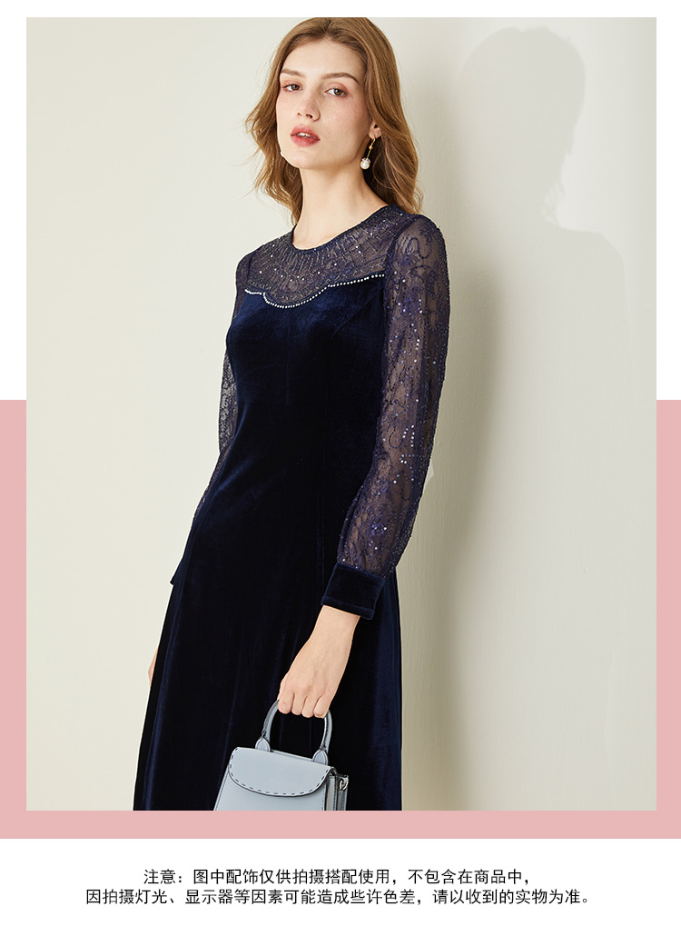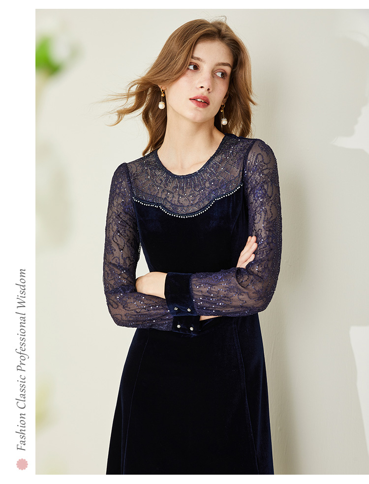 LC868斯尔丽瑟俪秋季新品时尚钉珠气质优雅修身长袖连衣裙