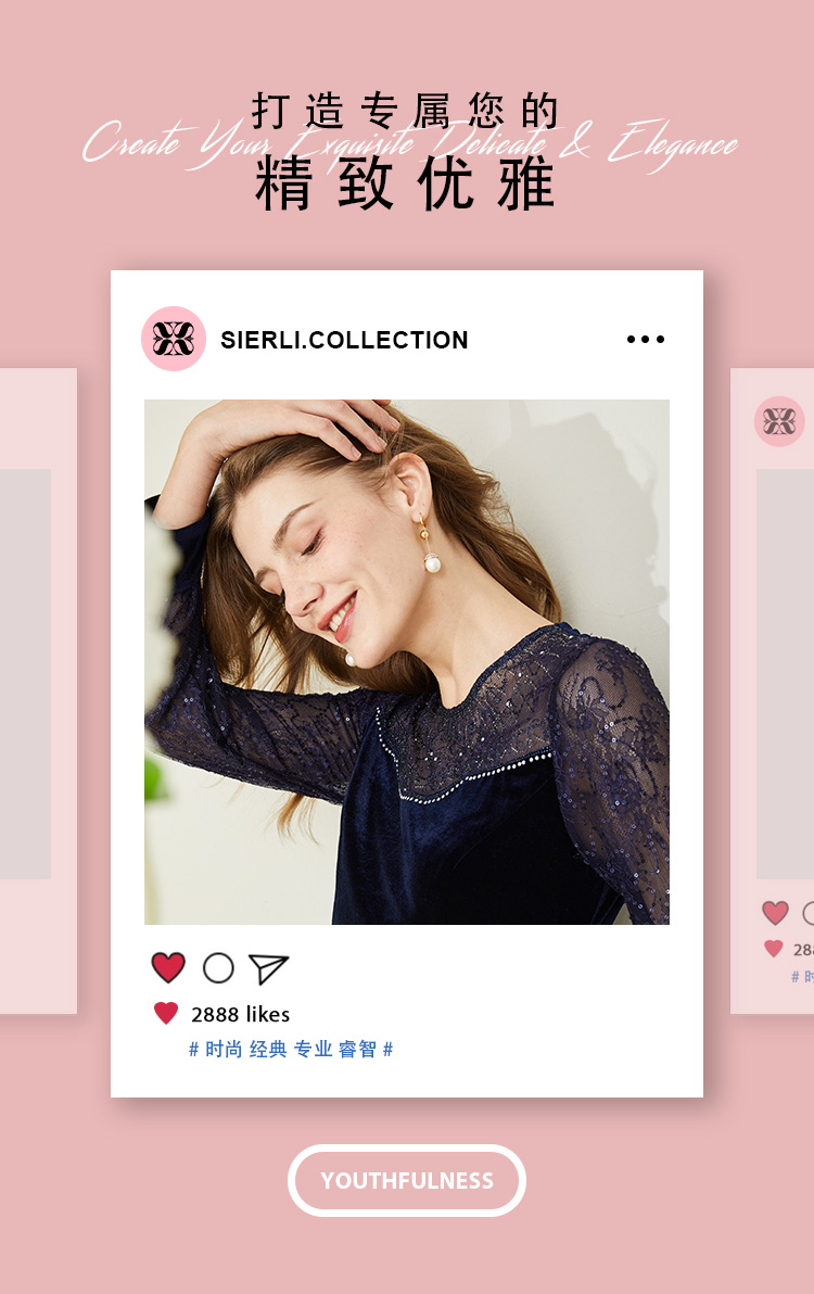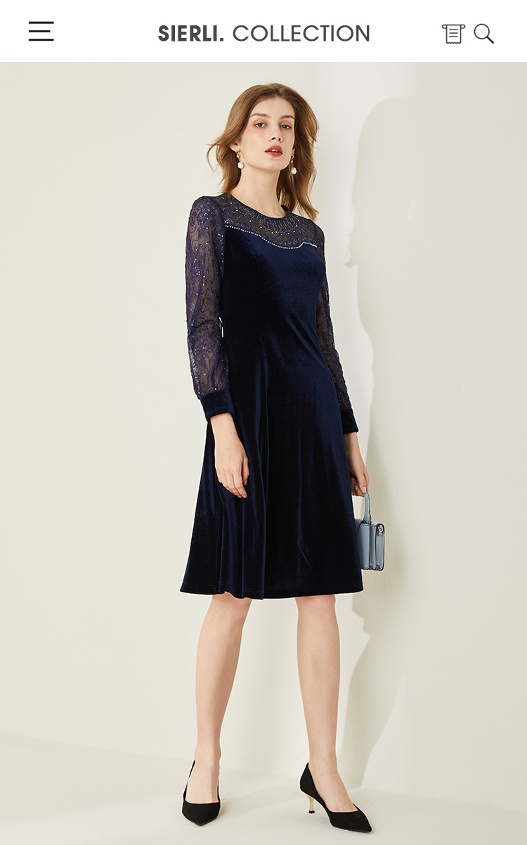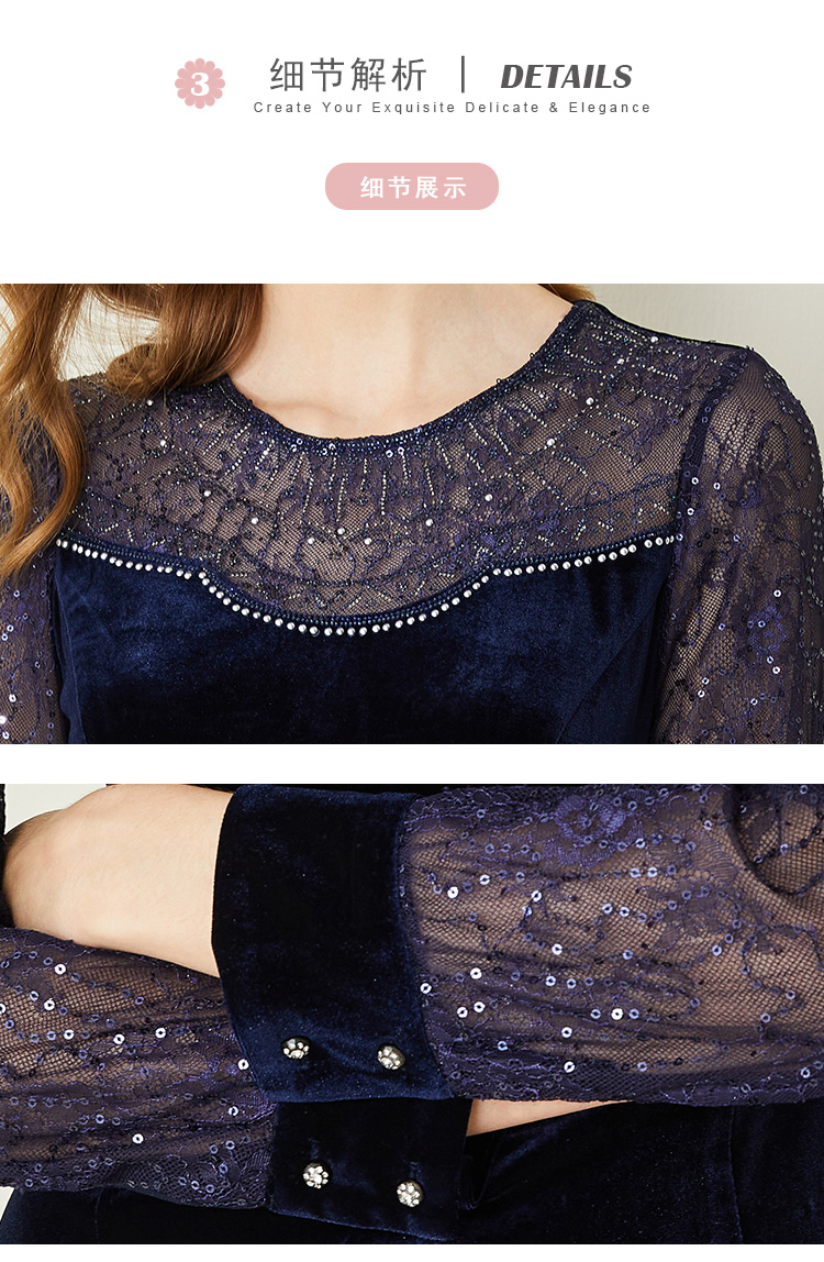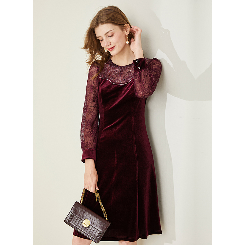 LC868斯尔丽瑟俪秋季新品时尚钉珠气质优雅修身长袖连衣裙