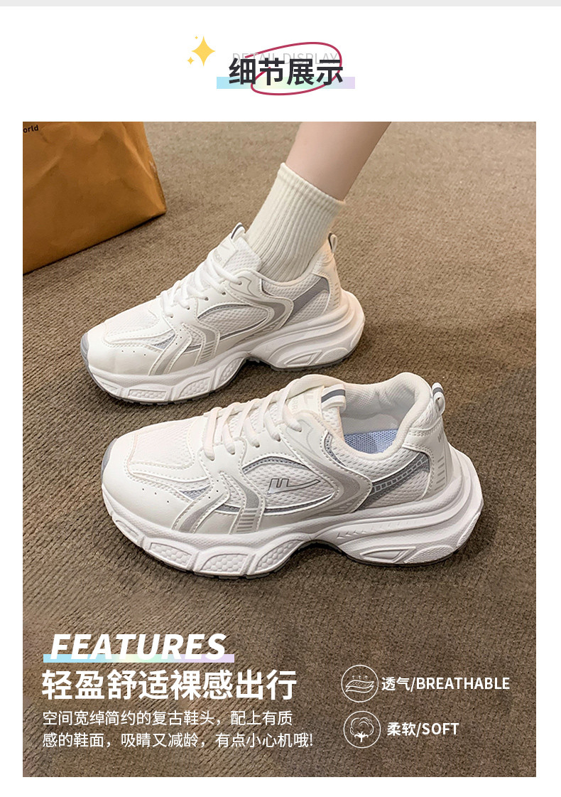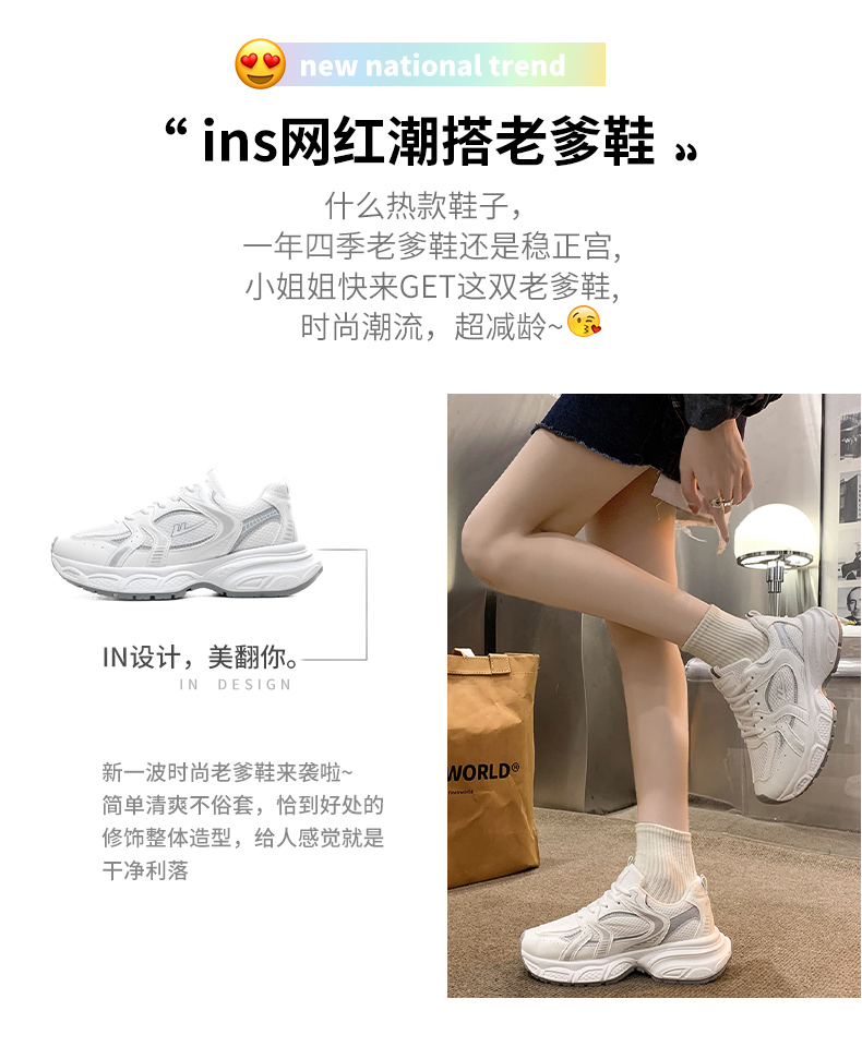 回力女鞋2025新款爆款小白鞋夏季百搭厚底透气运动鞋子老爹鞋女款WXY(S)-3476N