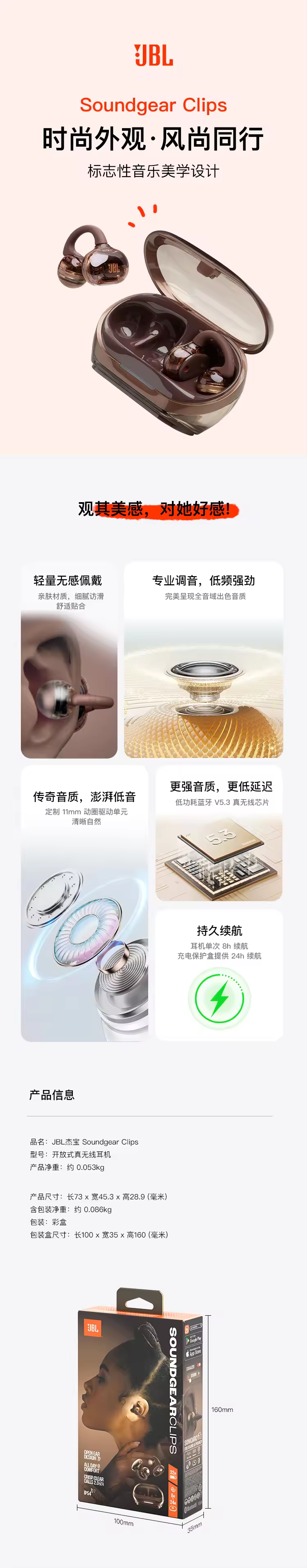JBL杰宝 Soundgear Clips 开放式真无线耳机
